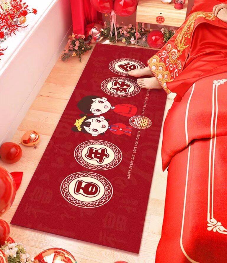 淘宝中国风婚房地毯卧室床头床边毯结婚用品装饰长条地垫喜字床尾垫子