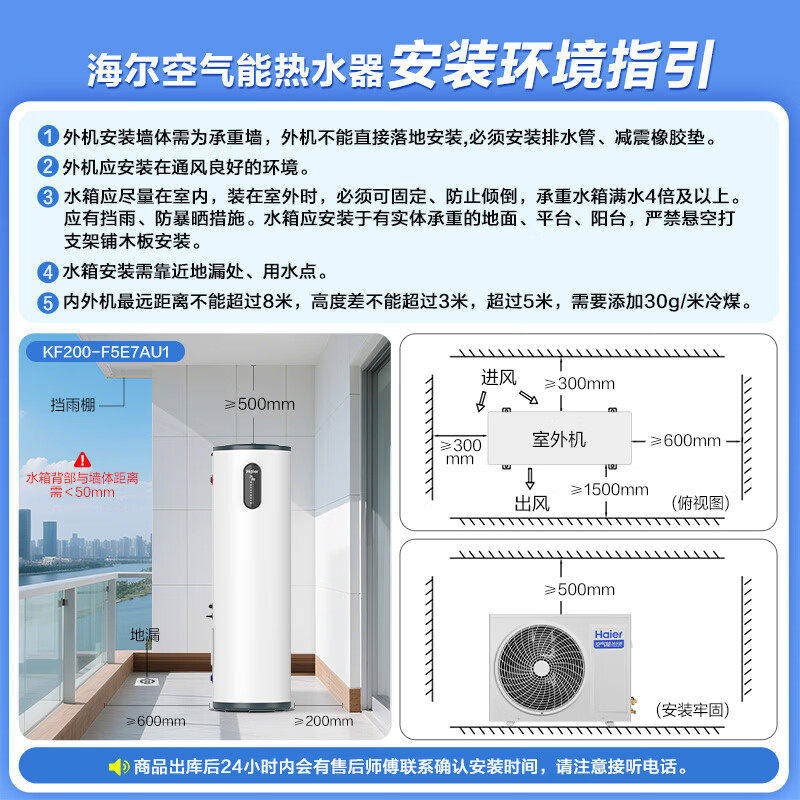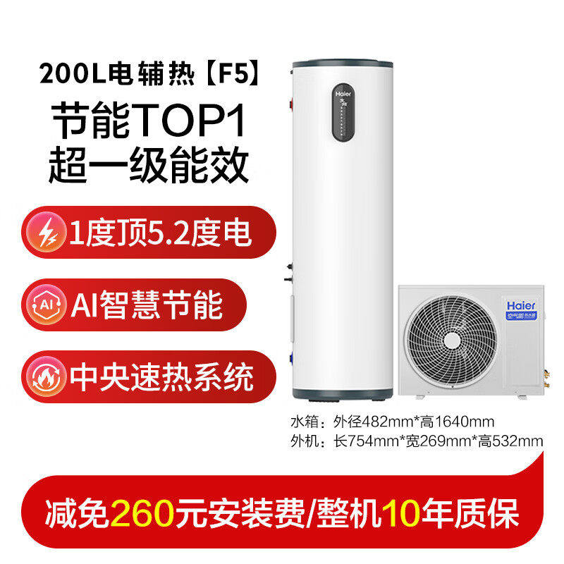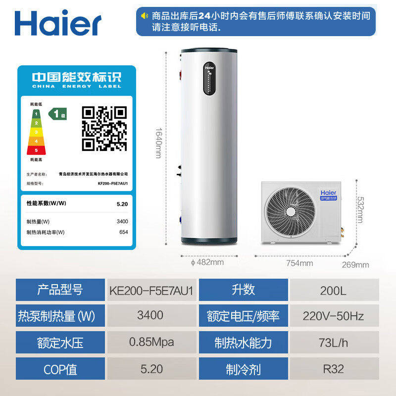 淘宝Haier/海尔 KF200-F5E7AU1空气能热水器升电辅变频一级能效
