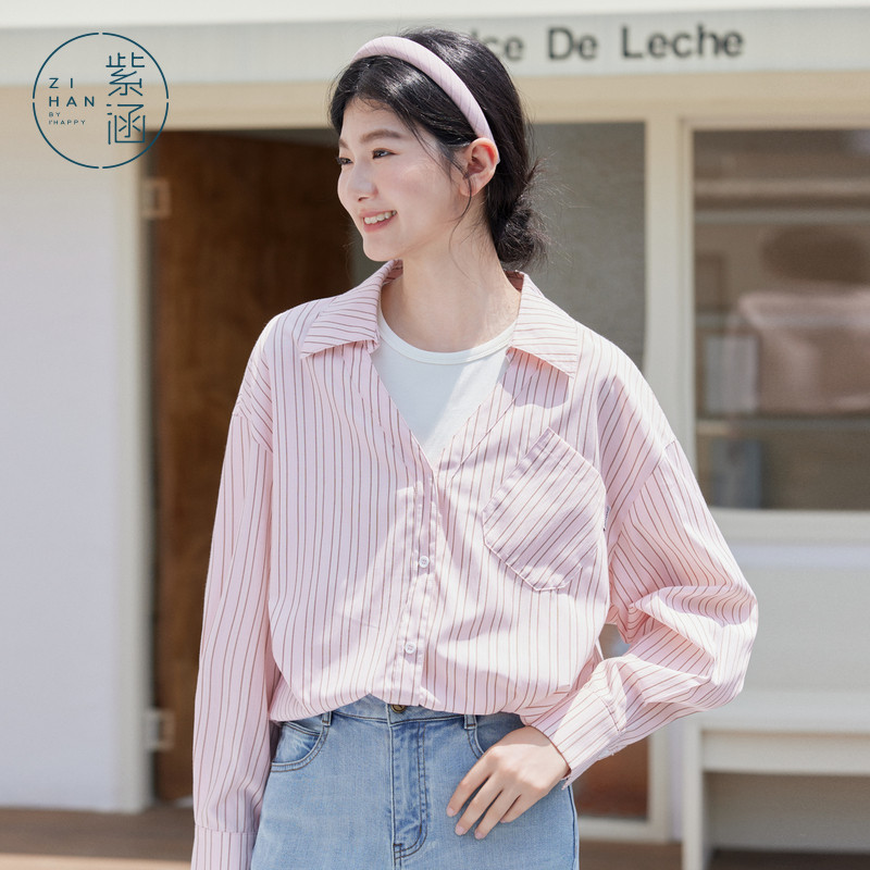 淘Halo Luu蓝色衬衫女春季新款韩系休闲纯棉宽松慵懒风外套长袖衬衣