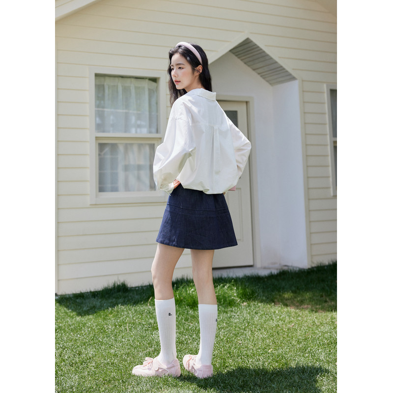 Halo Luu蓝色衬衫女春季新款韩系休闲纯棉宽松慵懒风外套长袖衬衣