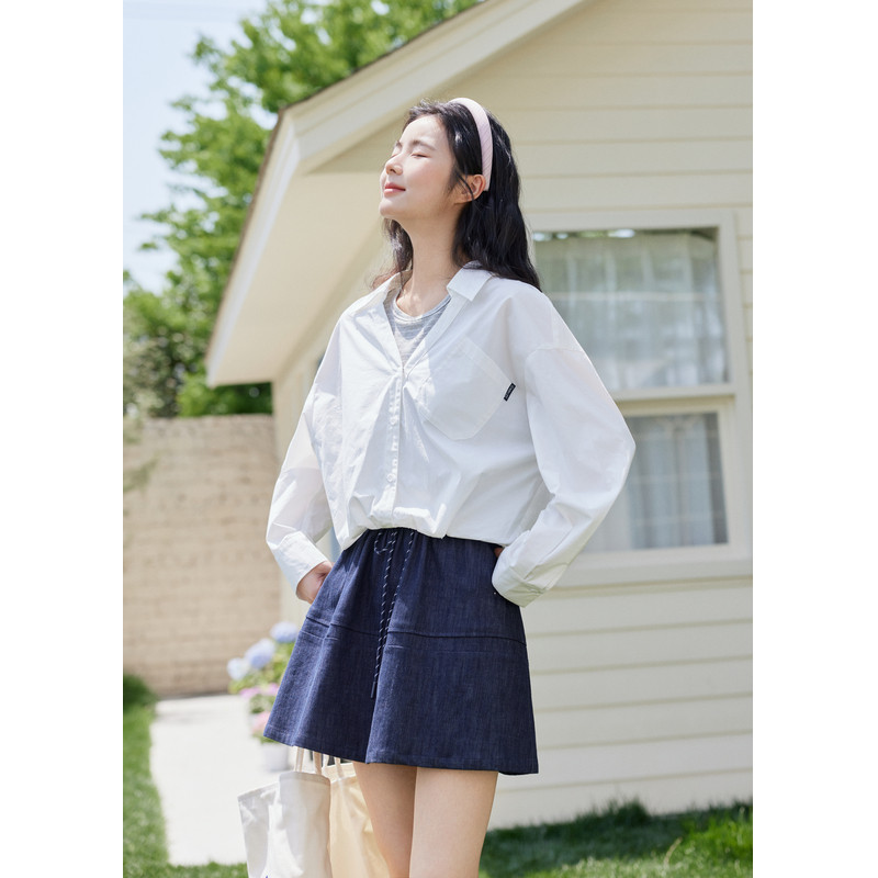 ONLY2026春季新款轻薄透感抽绳下摆宽松落肩翻领长袖衬衫上衣女