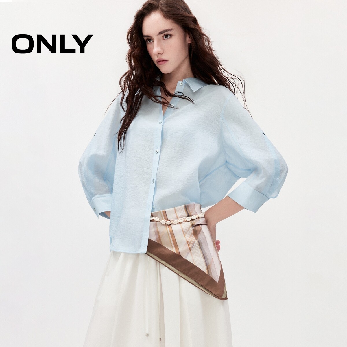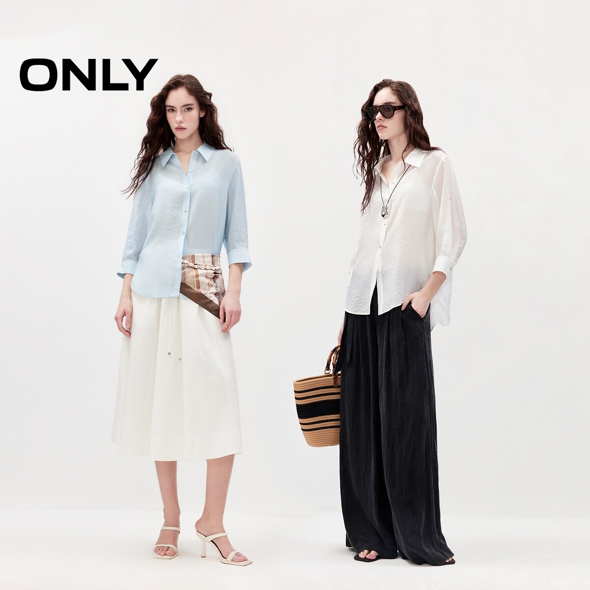 ONLY2026夏季新款后背开叉纯色可调节袖袢含莱赛尔翻领舒适衬衫女