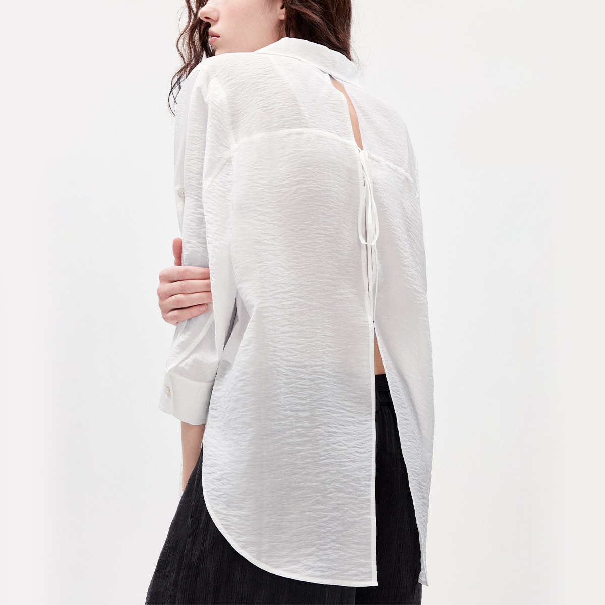 天猫ONLY2026夏季新款后背开叉纯色可调节袖袢含莱赛尔翻领舒适衬衫女