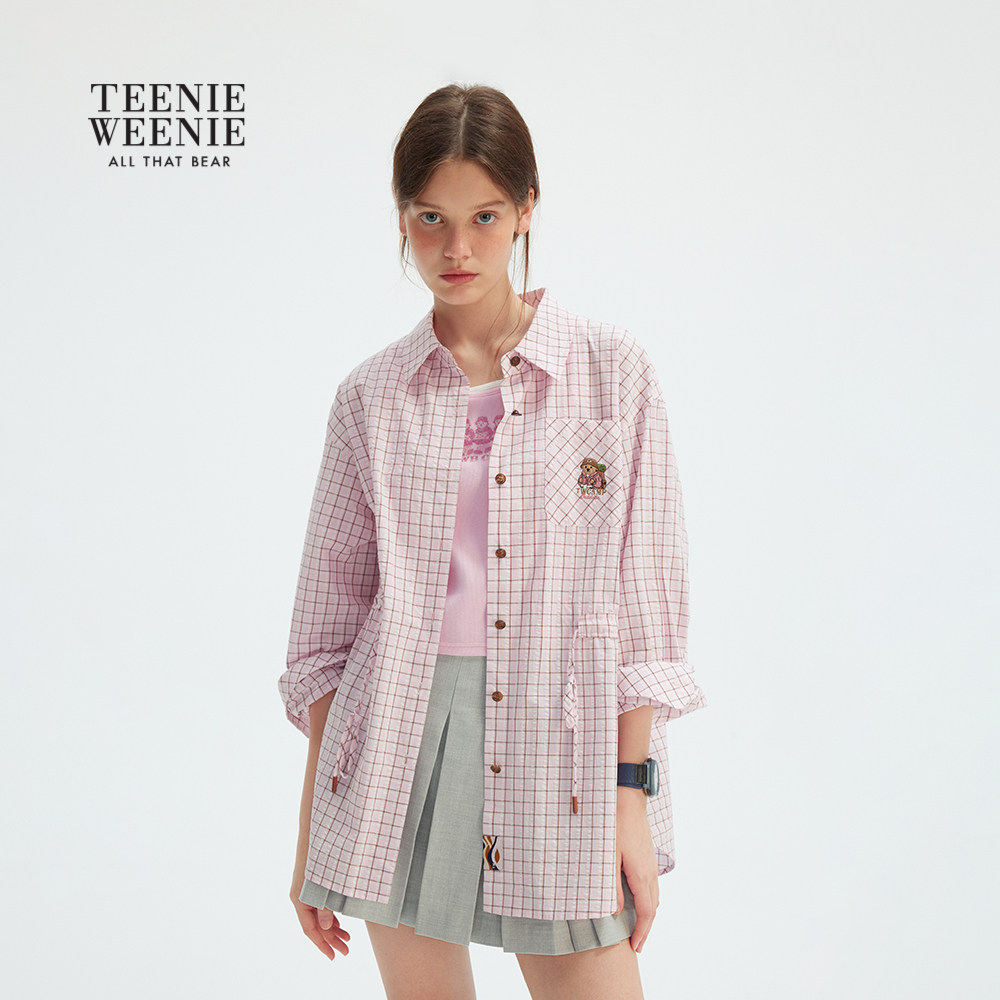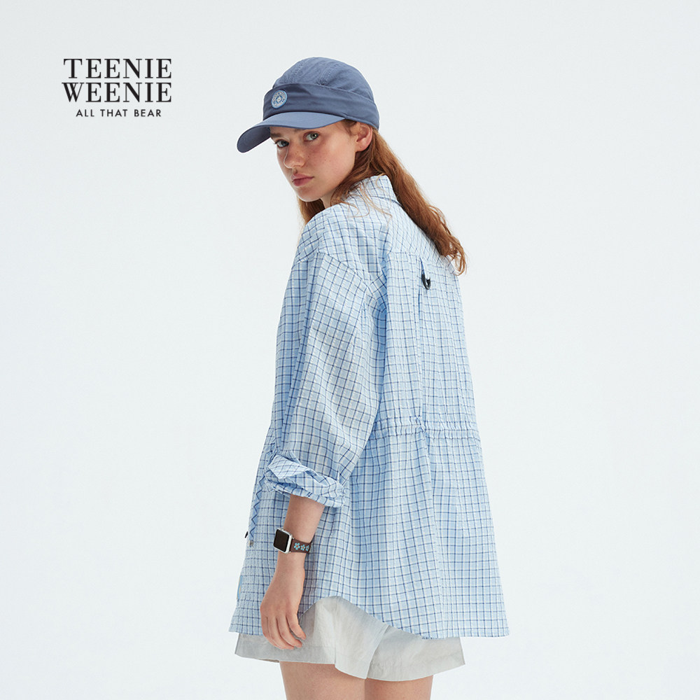 天猫TeenieWeenie小熊女装衬衫夏季清新少女轻薄舒适宽松休闲格纹衬衣