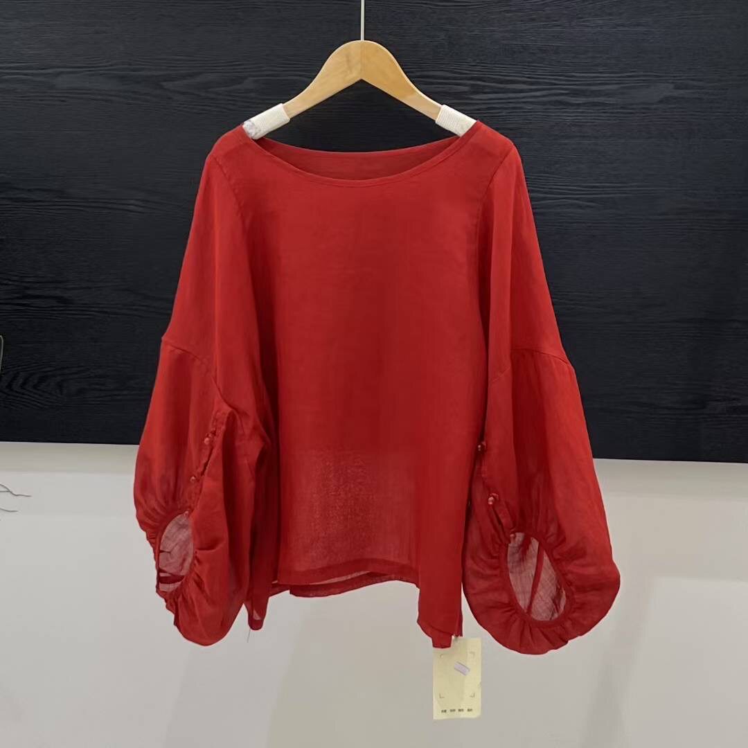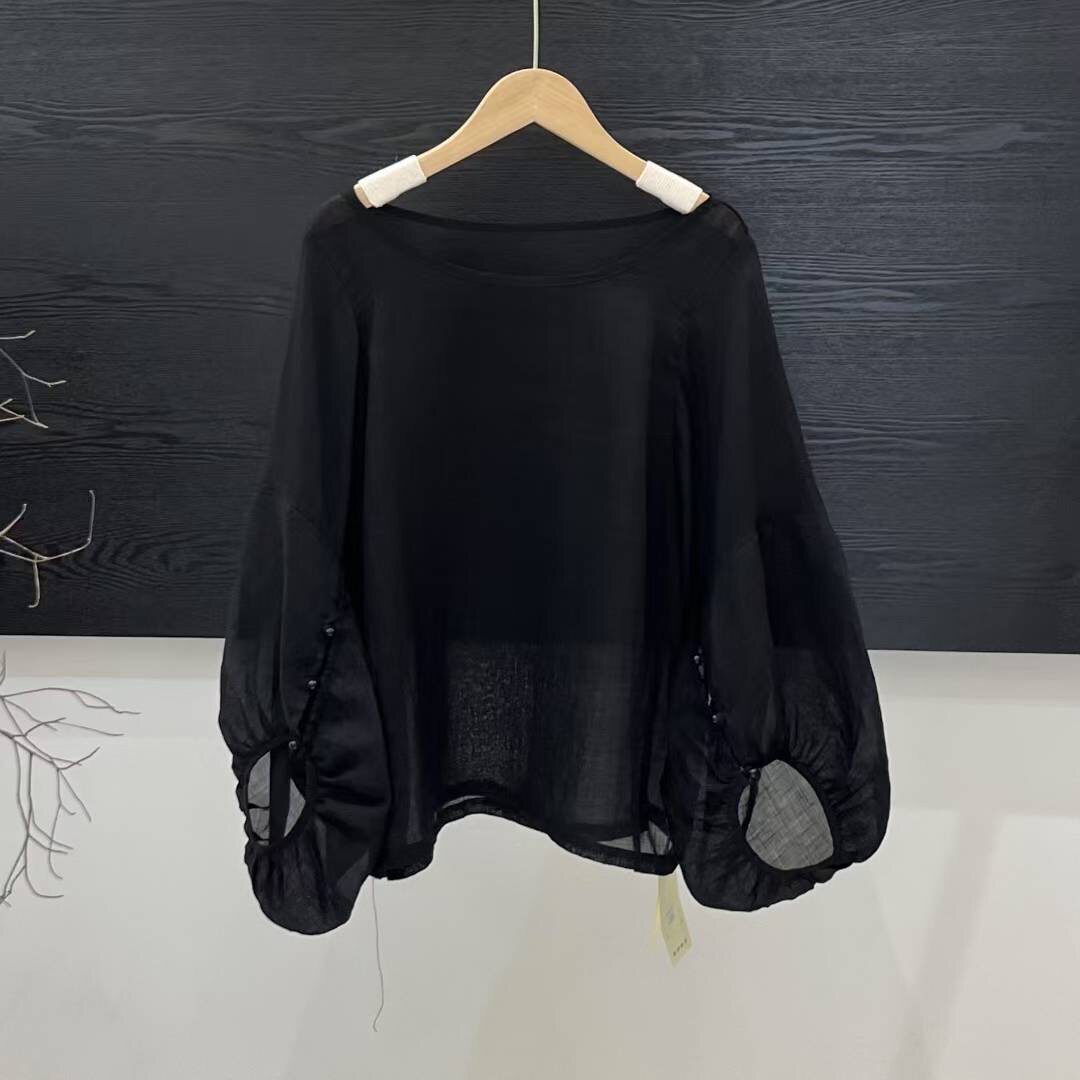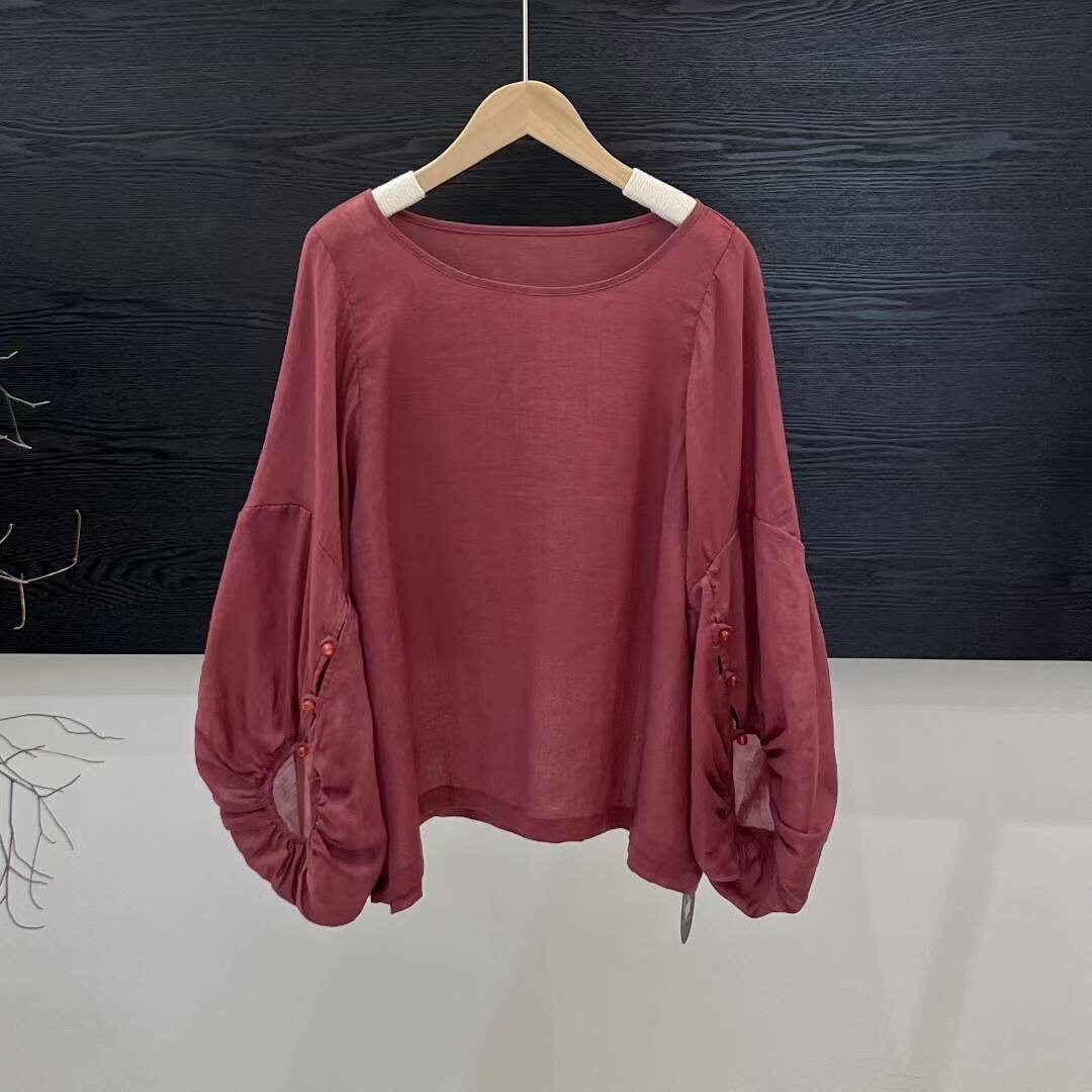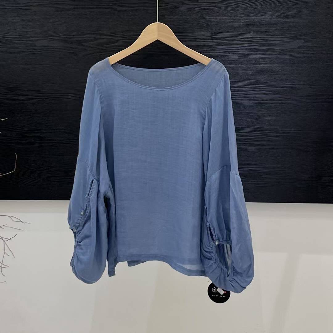 天生贵气!日系高端通勤圆领灯笼袖衬衫女春季休闲OL气质长袖上衣