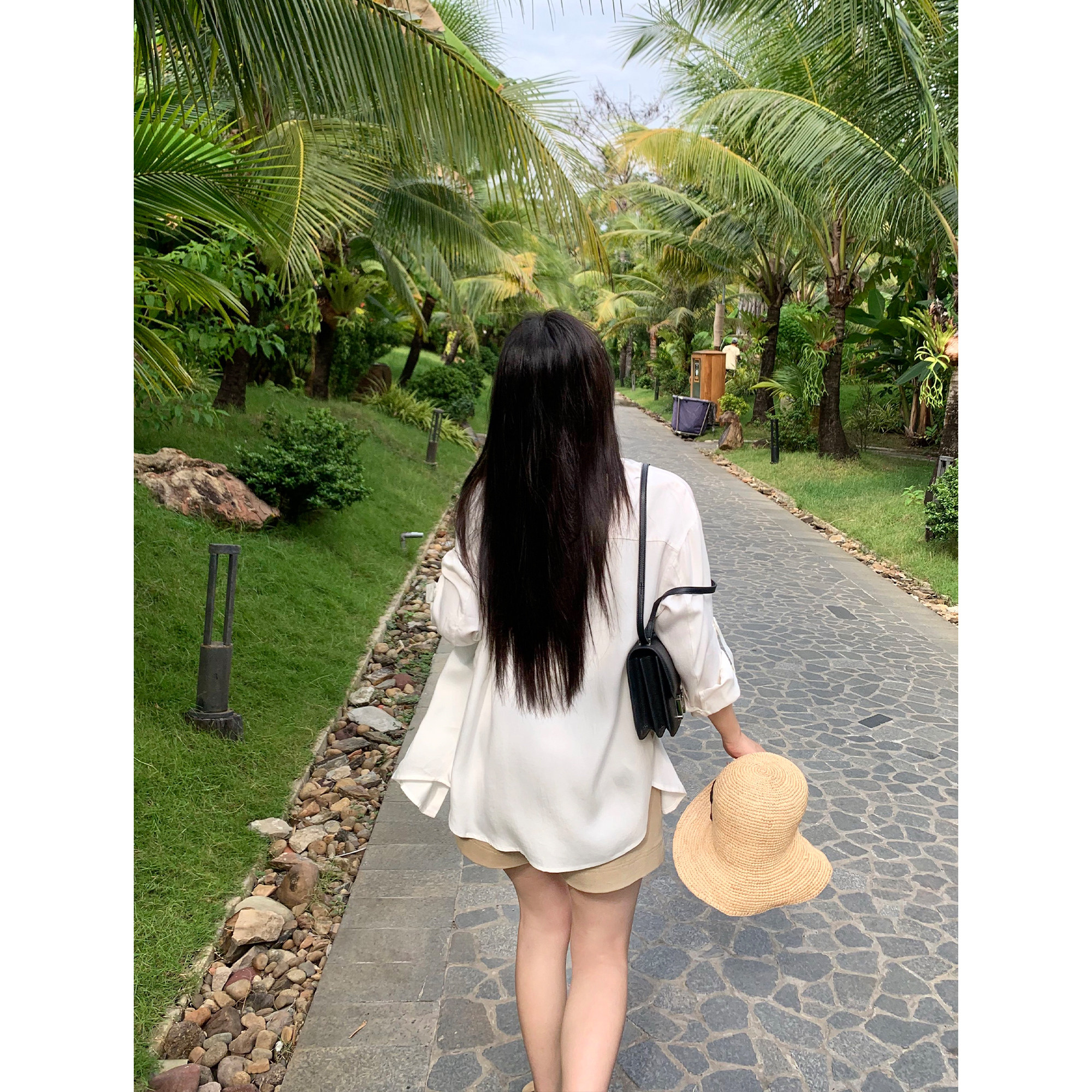 pusumede 舒适造型 1OO莱赛尔翻领衬衫女宽松垂坠感休闲长袖衬衣