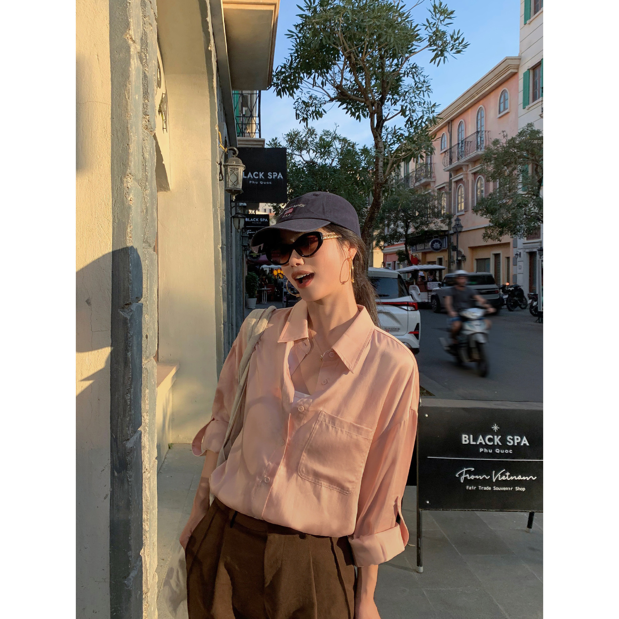 淘宝pusumede 舒适造型 1OO莱赛尔翻领衬衫女宽松垂坠感休闲长袖衬衣