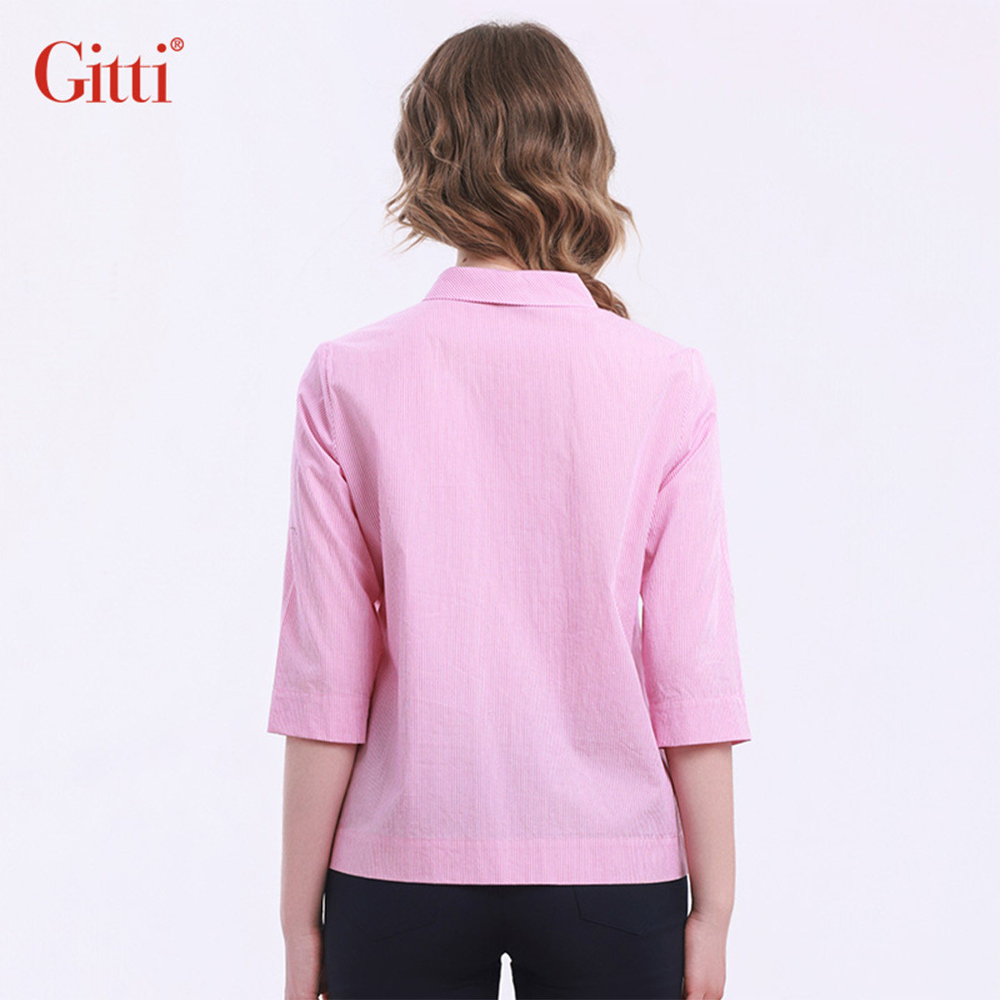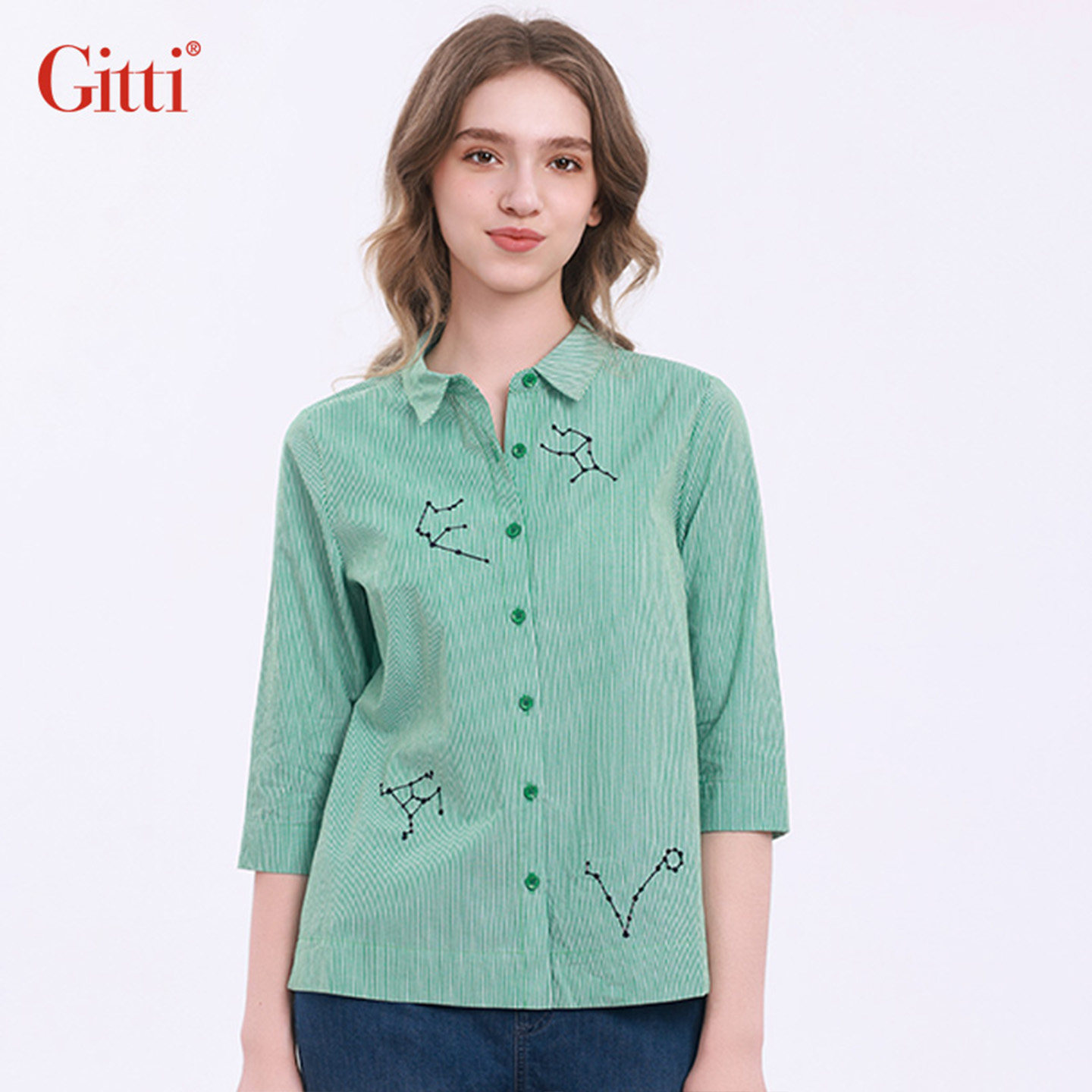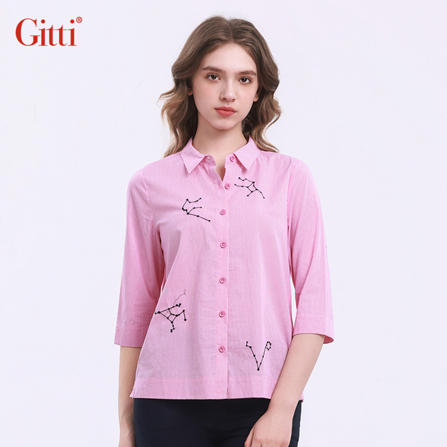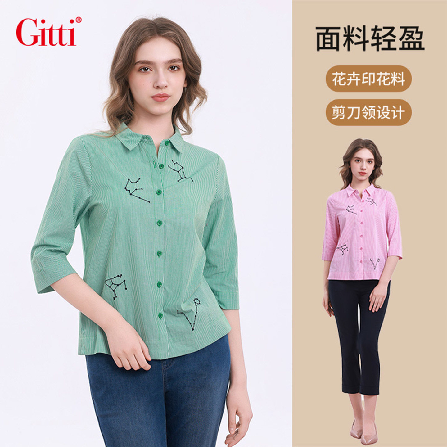 天猫Gitti/吉蒂刺绣车花五分袖衬衫女棉舒适亲肤中袖衬衣G261173