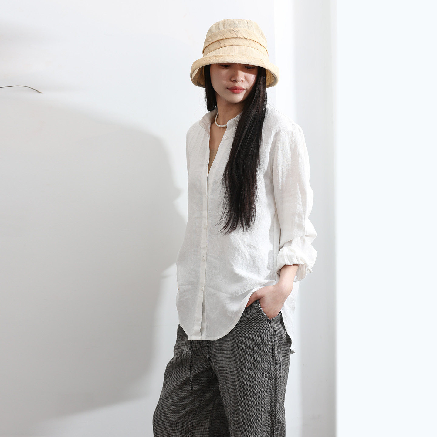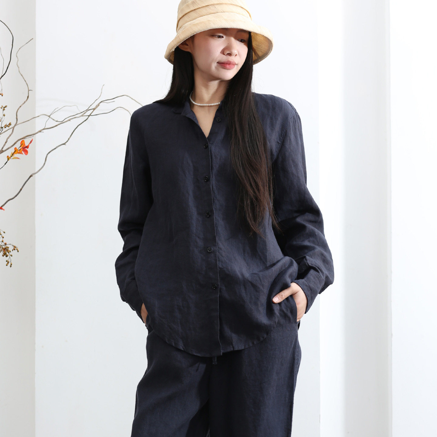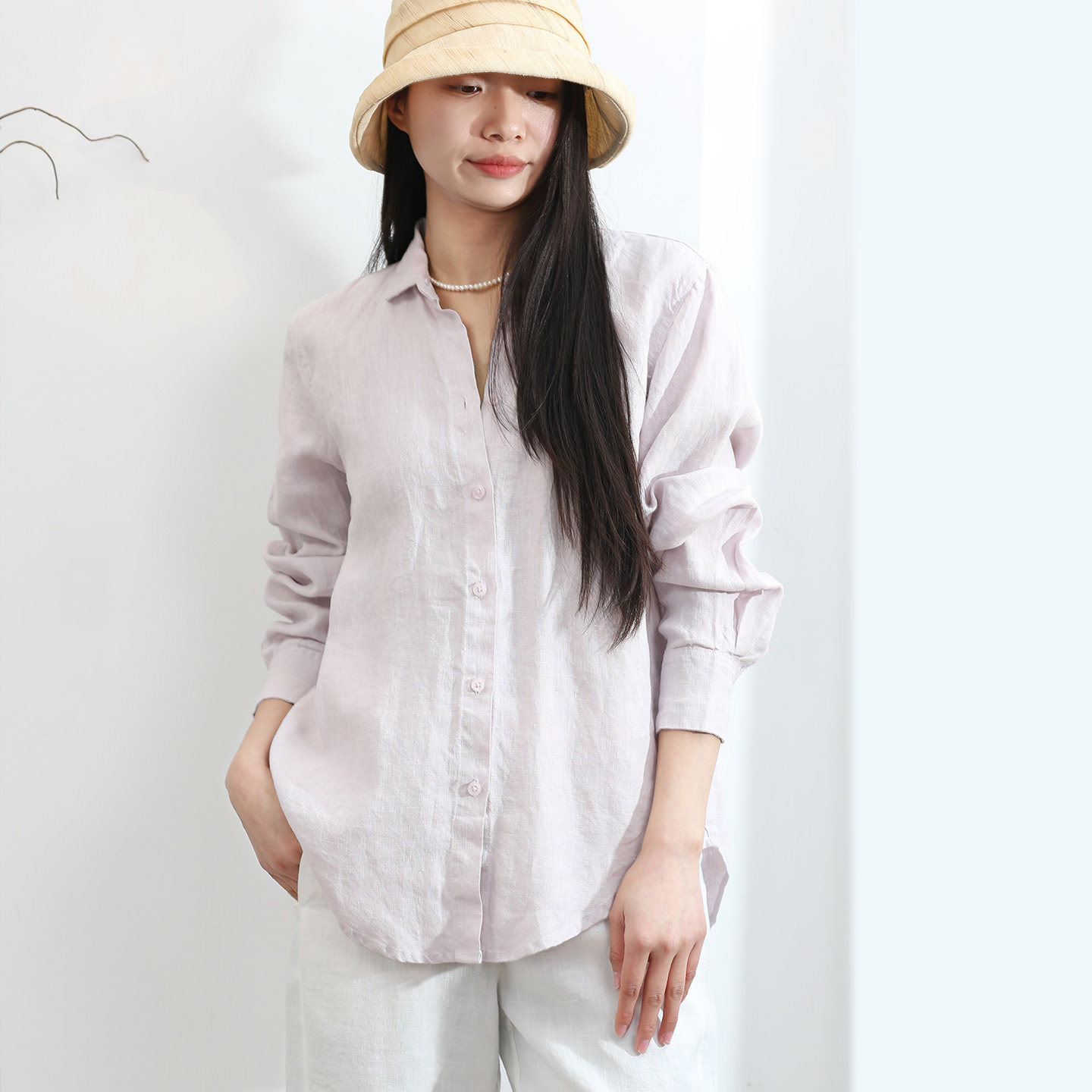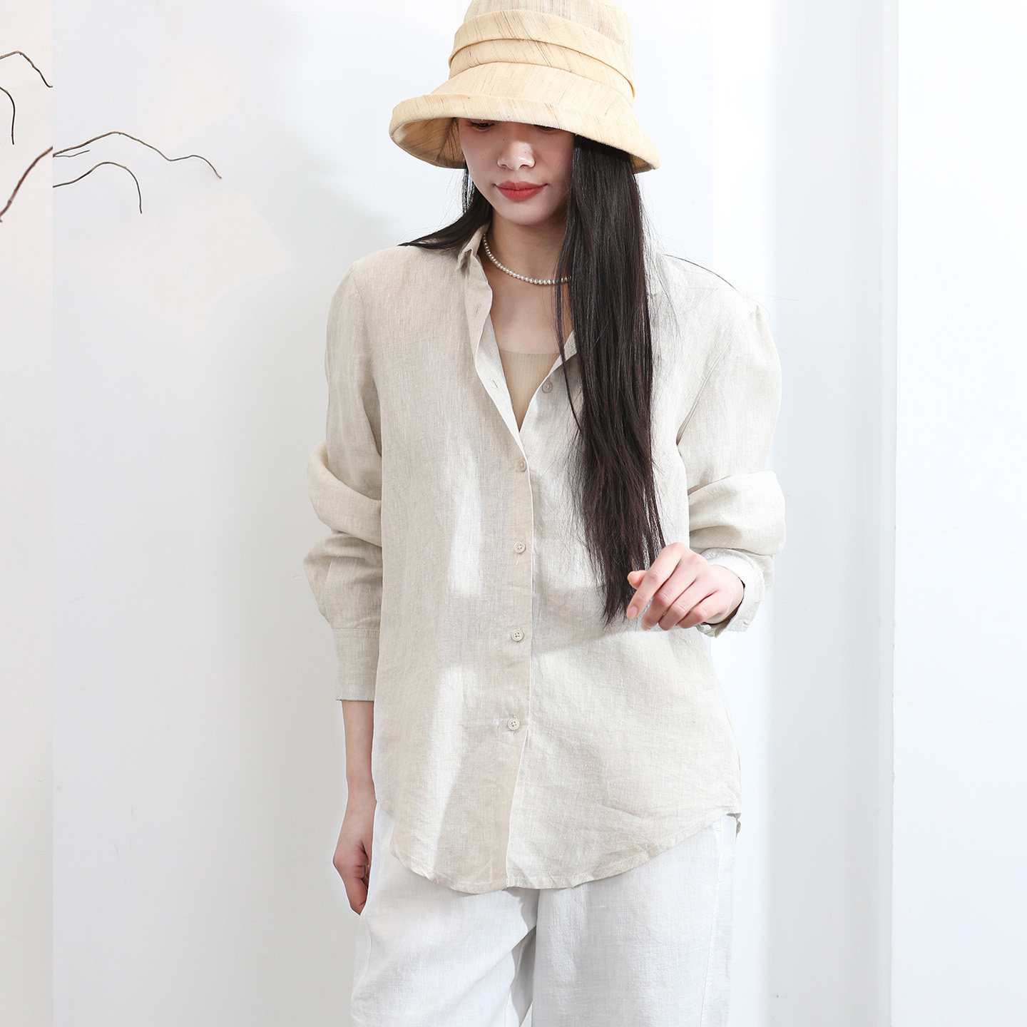 Maven Lin 智性老钱感 1OO亚麻轻薄翻领衬衫女松弛简约通勤衬衣