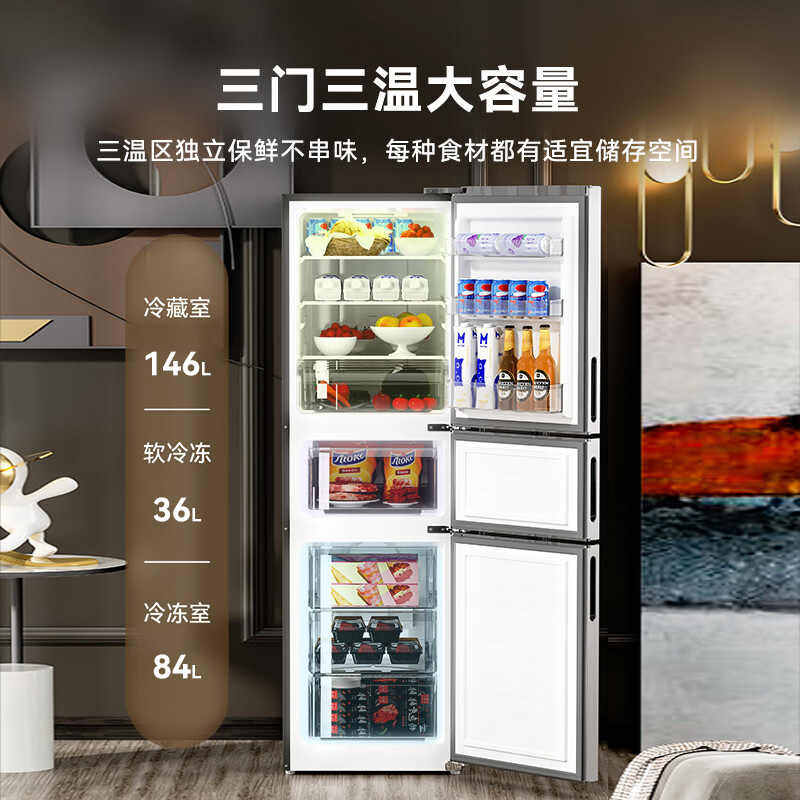 荣事达266L三门风冷无霜冰箱,专为家用及出租房设计,集节能、静音与实用于一体。采用一级能效标准,高效压缩机配合风冷无霜技术,制冷均匀,免去除霜烦恼,保鲜更持久。三门分区设计,冷藏、冷冻、变温室独立控温,满足多样存储需求。266L适中容量,适合小家庭或单身人士使用,占地小却空间利用率高。运行低噪,节能环保,日均耗电量低,长期使用更省钱。简约外观搭配易清洁面板,美观耐用。无论是居家还是出租房,荣事达这款冰箱都以高性价比和可靠品质,为用户带来便捷舒适的生活体验。