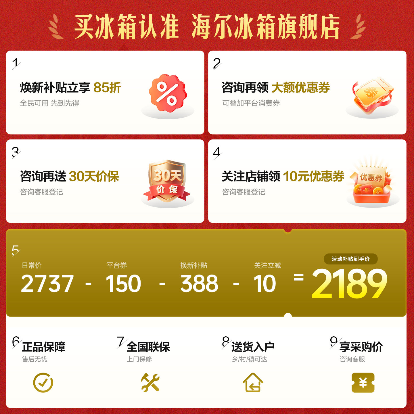 天政府换新补贴海尔336L法式双开四门家用小户型一级能效风冷电冰箱