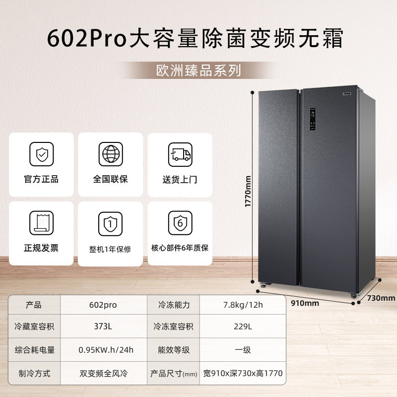 志高对开双开门风冷无霜大容量超薄嵌入式一级节能家用电冰箱十字