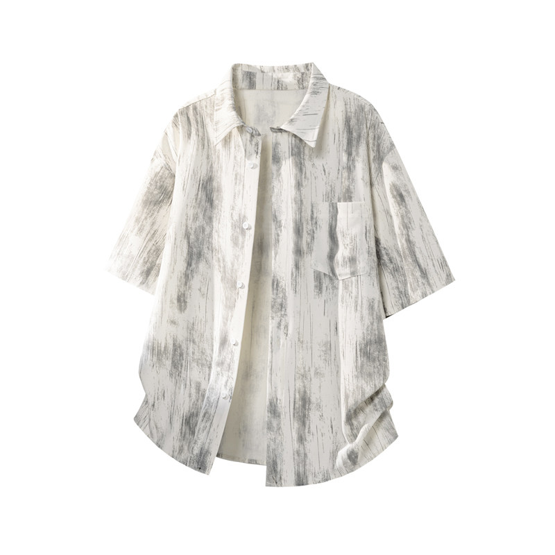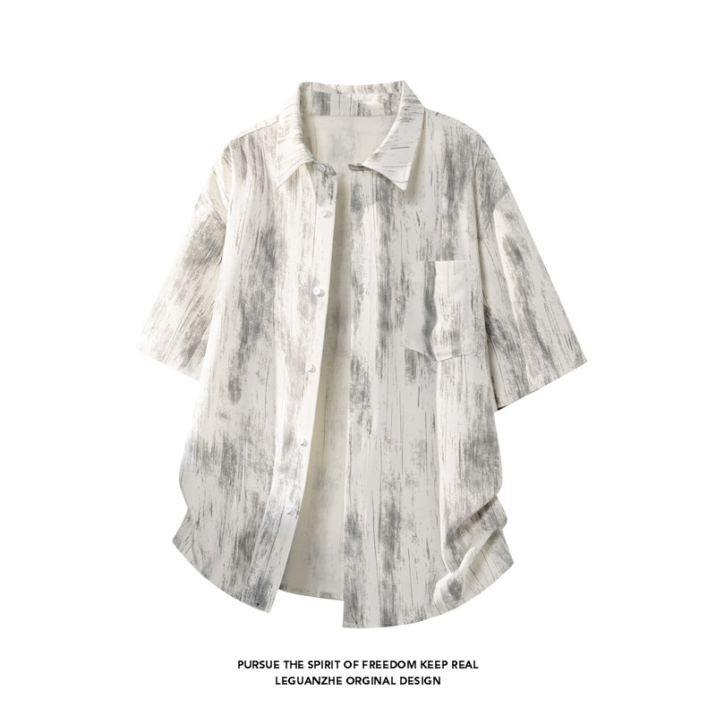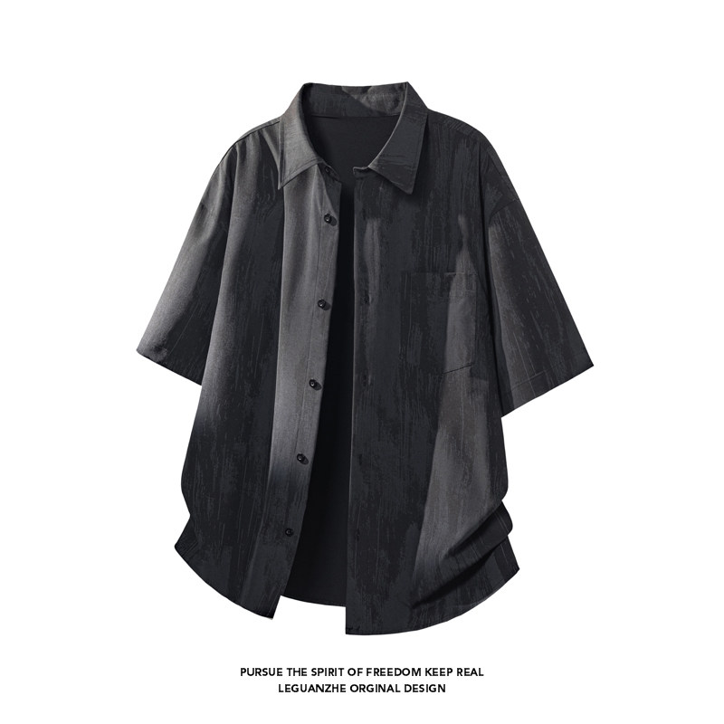 淘宝维路雅男装新款小众休闲男士短袖衬衫设计感宽松抗皱衬衣