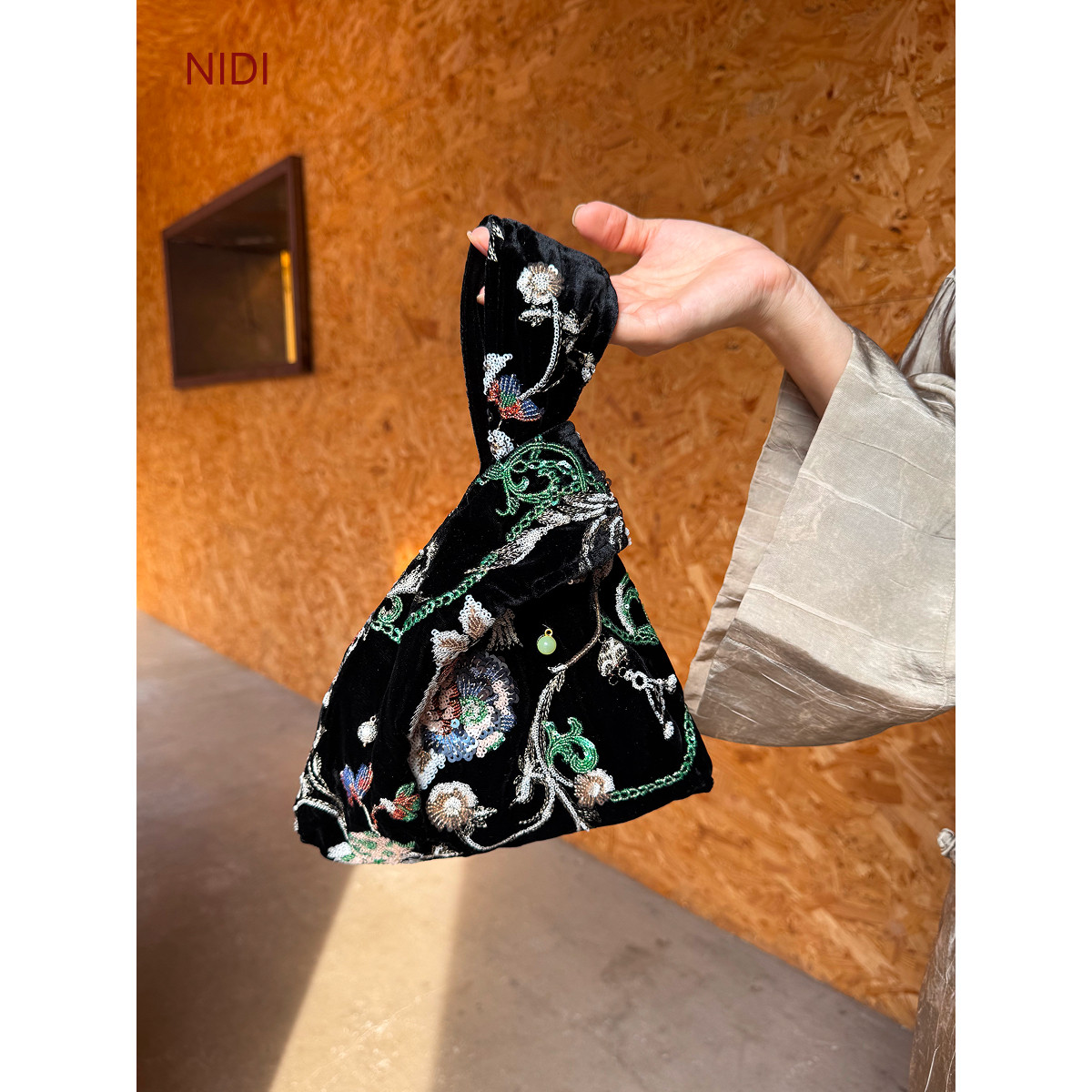 淘宝桑蚕丝手拎包女2026原创新款设计手拿包真丝包包复古百搭手拿包