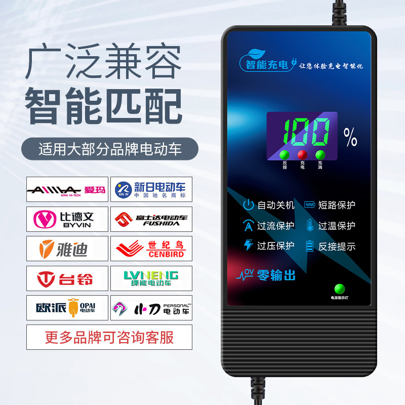 淘宝适用超威天能电动车电瓶充电器定时防充鼓48V60伏72V84V96V64通用