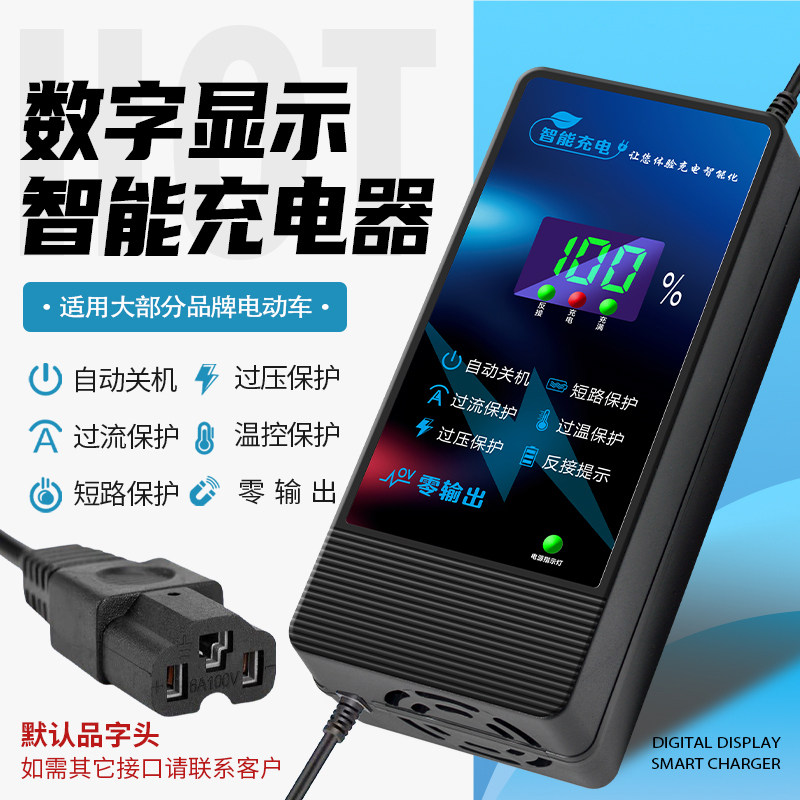 超威铅酸电池充电器通用电动车60v72v品字头自动断电智能款