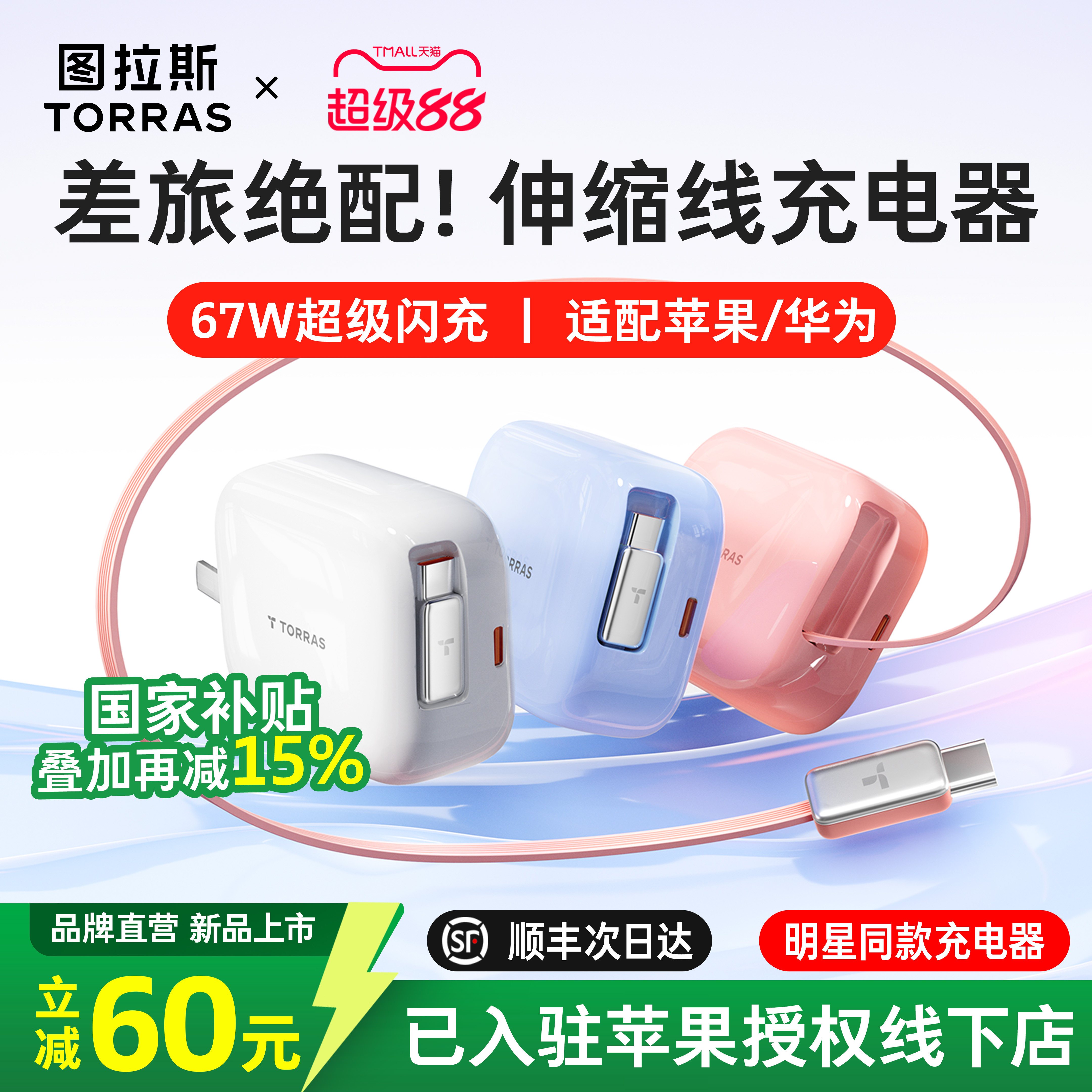 ![[iPhone17首选]图拉斯Yoga伸缩充电器67W适用苹果17ProMax手机充电头自带数据线typec快充电脑正品Air插头](https://img.alicdn.com/bao/uploaded/i4/2212656730171/O1CN01XJcszs1D8Mra5dK8f_!!4611686018427383867-0-item_pic.jpg)