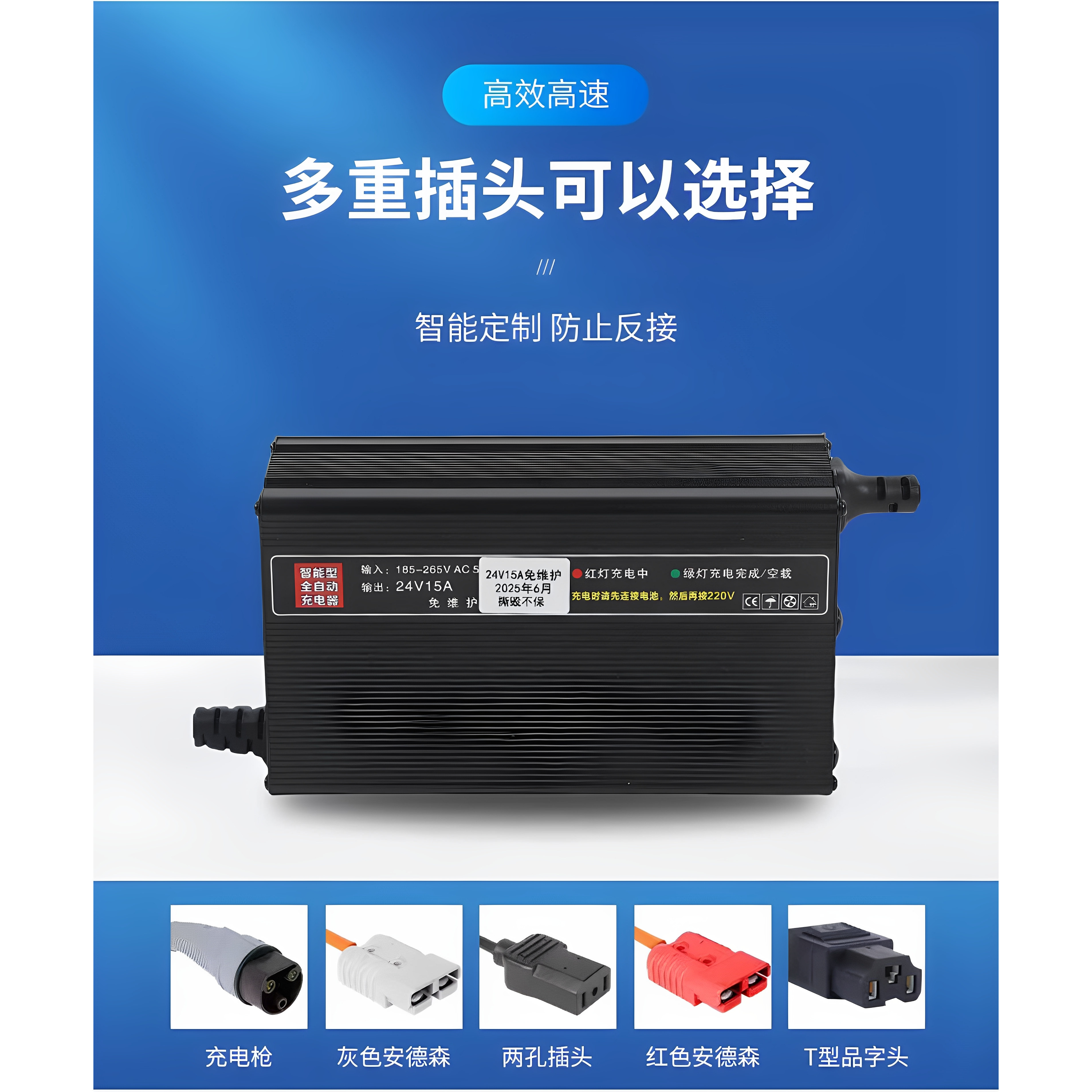 天24v15a洗地机扫地车智能充电器12v36伏48v电动叉车充电机手推式