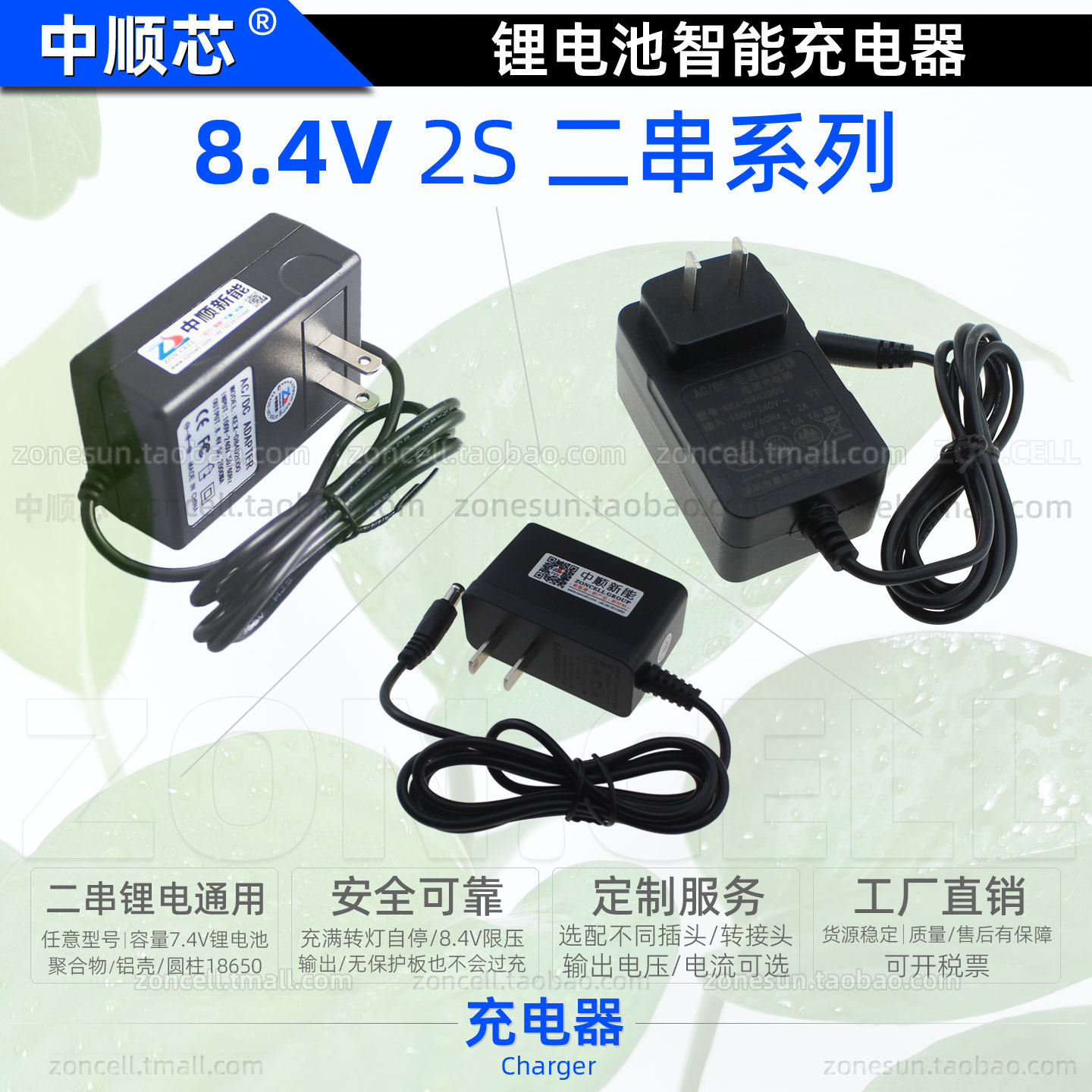 淘宝中顺2串7.4V锂电池组智能充电器 聚合物三元锂锰8.4V限压带指示灯