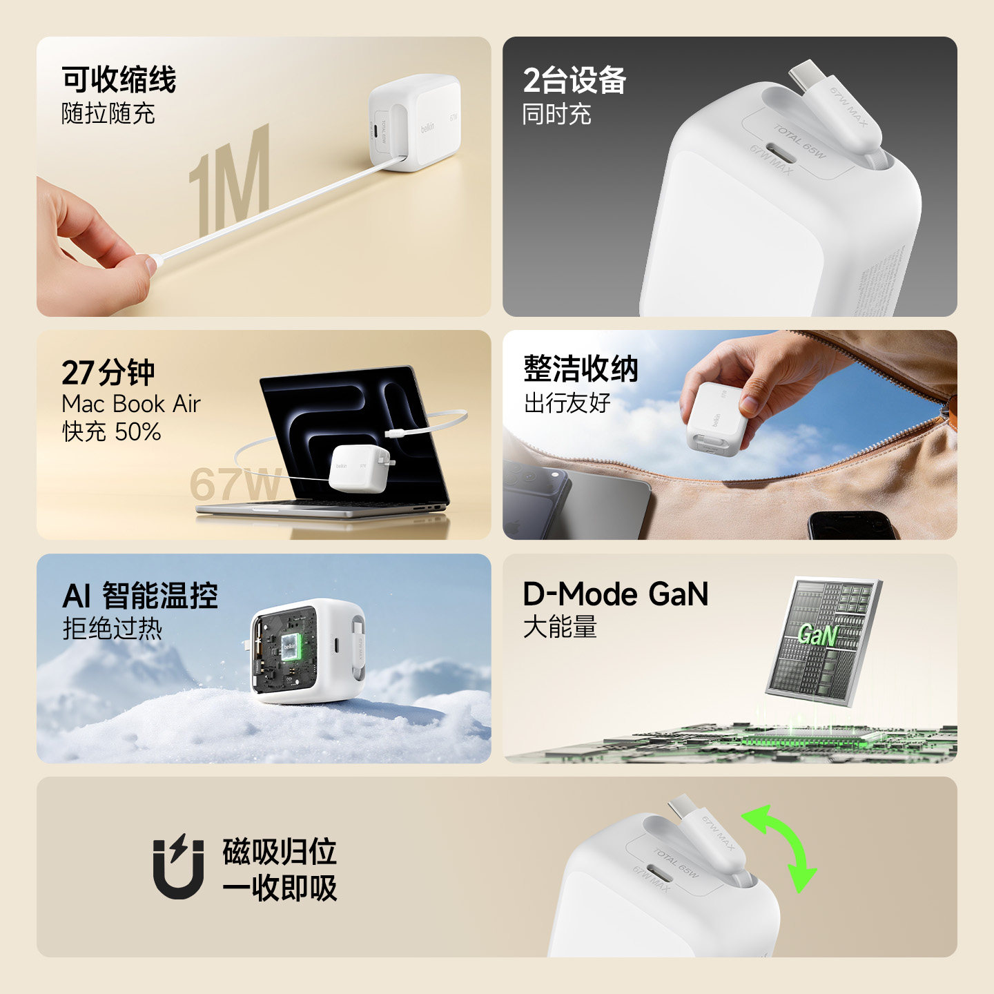 天猫Belkin贝尔金67w自带伸缩线TypeC充电器氮化镓充电头AVS快充适用苹果iPhone17ProMax手机笔记本电脑平板iPad