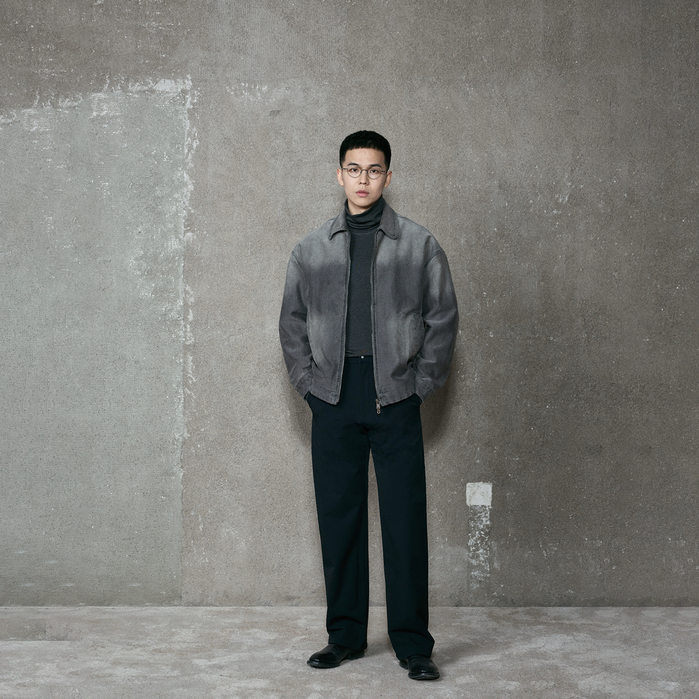 CNC男装26春夏宽松阔腿男士牛仔裤蓝色复古水洗直筒休闲牛仔长裤