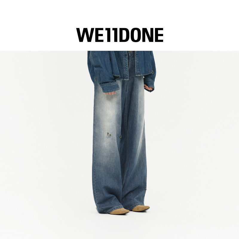 天猫WE11DONE26夏季新品男女同款金属logo穿孔细节牛仔裤休闲潮流