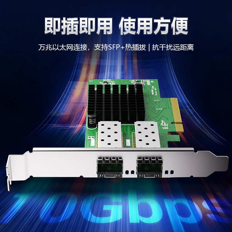 天猫DIEWU万兆光纤2口网卡Intel/X710-DA2服务器pcie电口光口网卡单口双口四口千兆台式机PCI-E2.5G/5G/10G网卡
