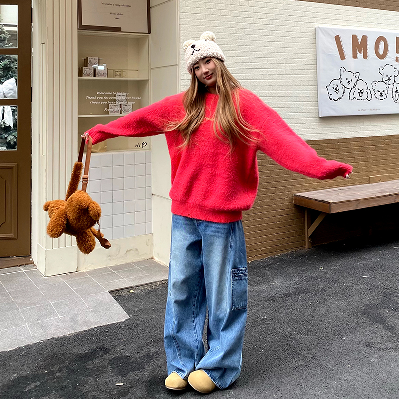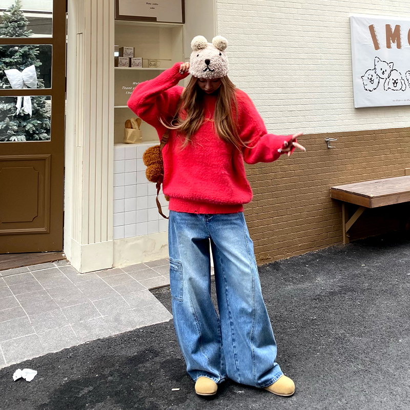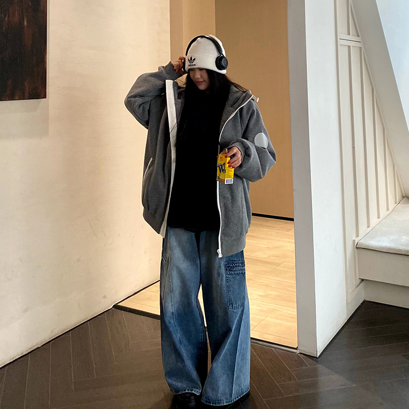 淘宝饭饭又饿了复古水洗工装牛仔裤女秋季款垂感阔腿百搭直筒显瘦裤子