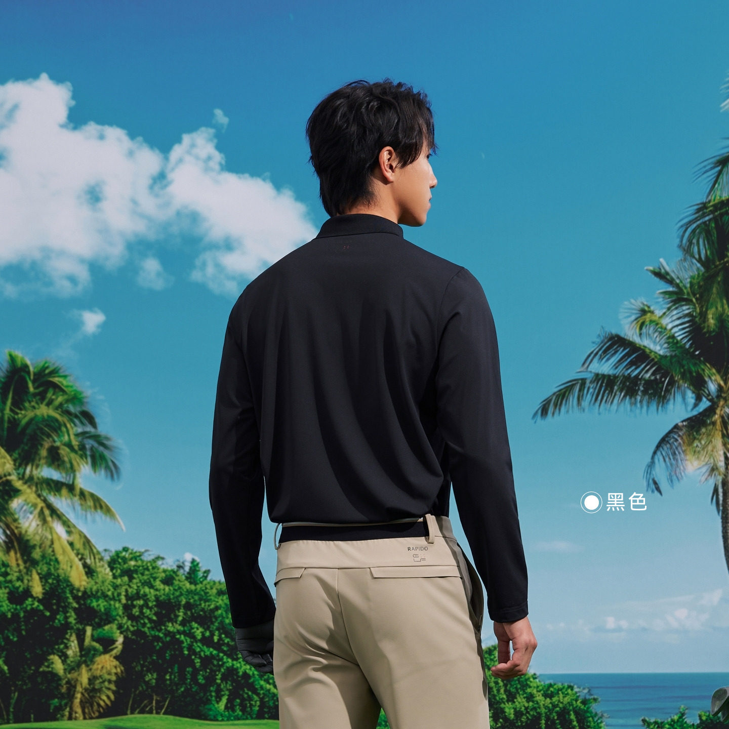 【新品上市】RAPIDO睿必度26春季男士GOLF防晒长袖POLO衫——雳霹道系列,专为都市运动精英打造。采用高科技UPF100+专业防晒面料,有效阻挡99%以上紫外线,户外挥杆更安心。立体剪裁结合微弹材质,兼顾舒适与活动自由度,腋下透气网眼设计提升排汗性能。经典POLO领型搭配精致刺绣LOGO,简约不失格调,轻松驾驭球场与日常场景。轻盈速干、抗皱易打理,是春日户外出行的理想之选。雳霹道系列,以专业守护每一步自信前行。
