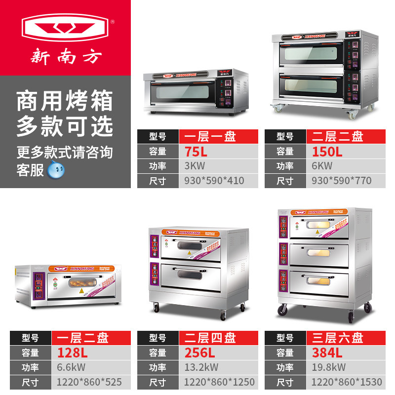 天猫新南方烤箱商用大容量型不锈钢烘焙炉一二层两四盘私房蛋糕披萨店