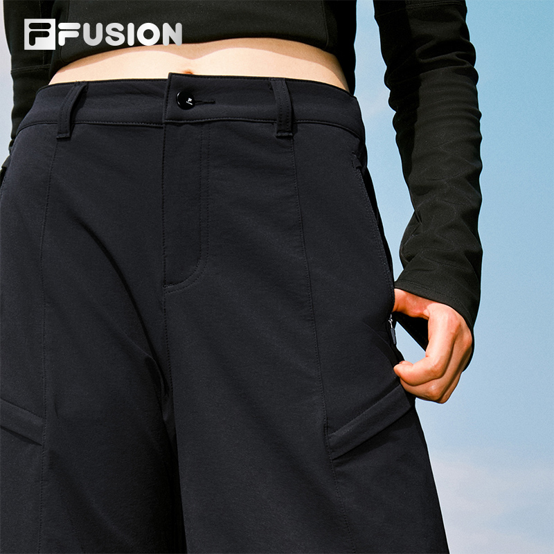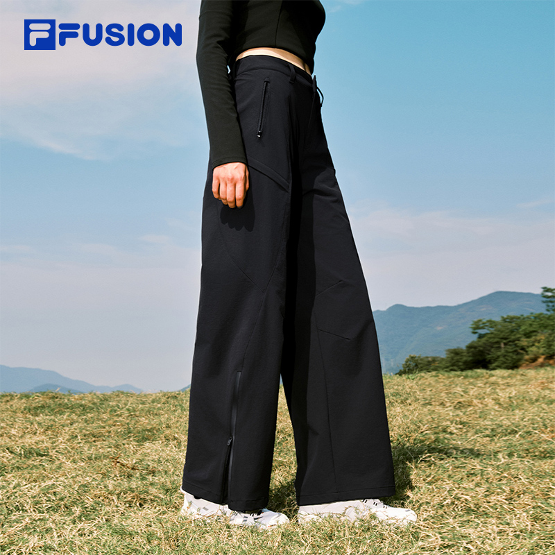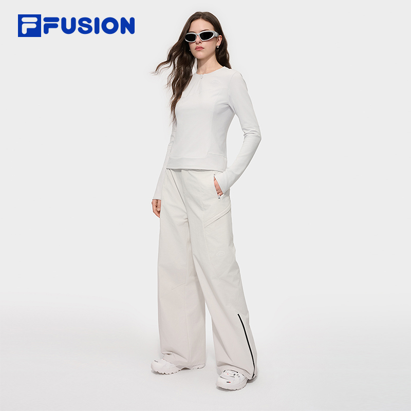 天猫赵露思同款FILA FUSION斐乐潮牌梭织长裤女2025冬新款宽松工装裤