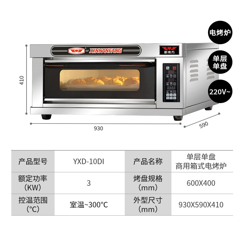 天猫新南方烤箱商用烤箱大容量一层单盘不锈钢电炉烘焙披萨蛋糕面包店