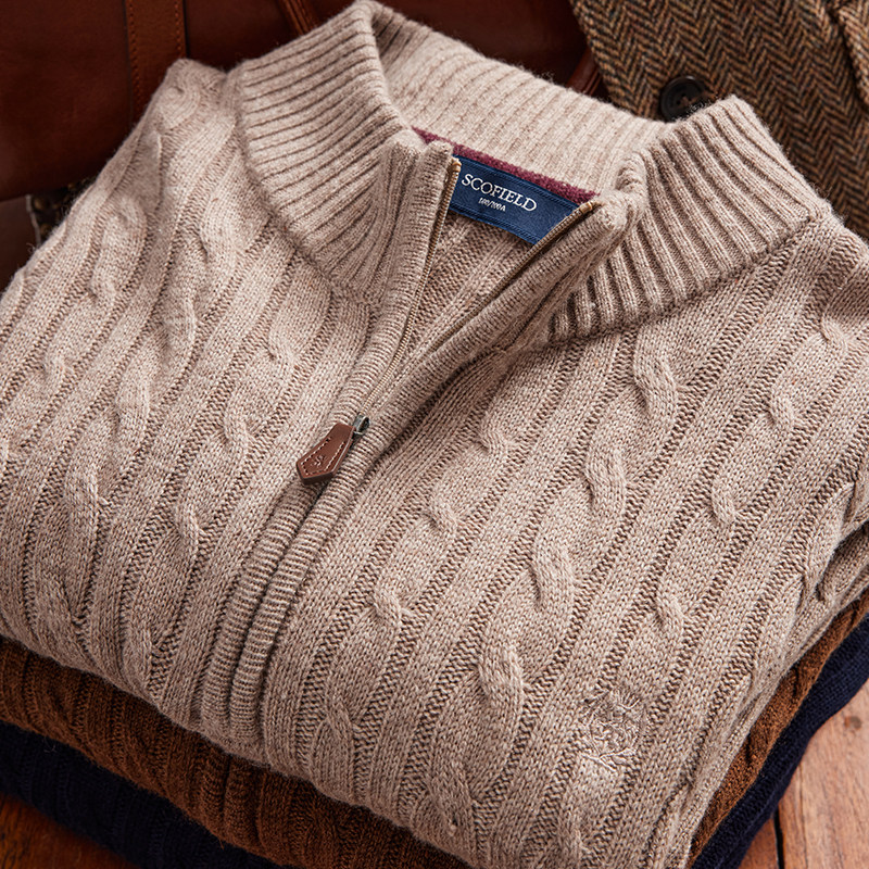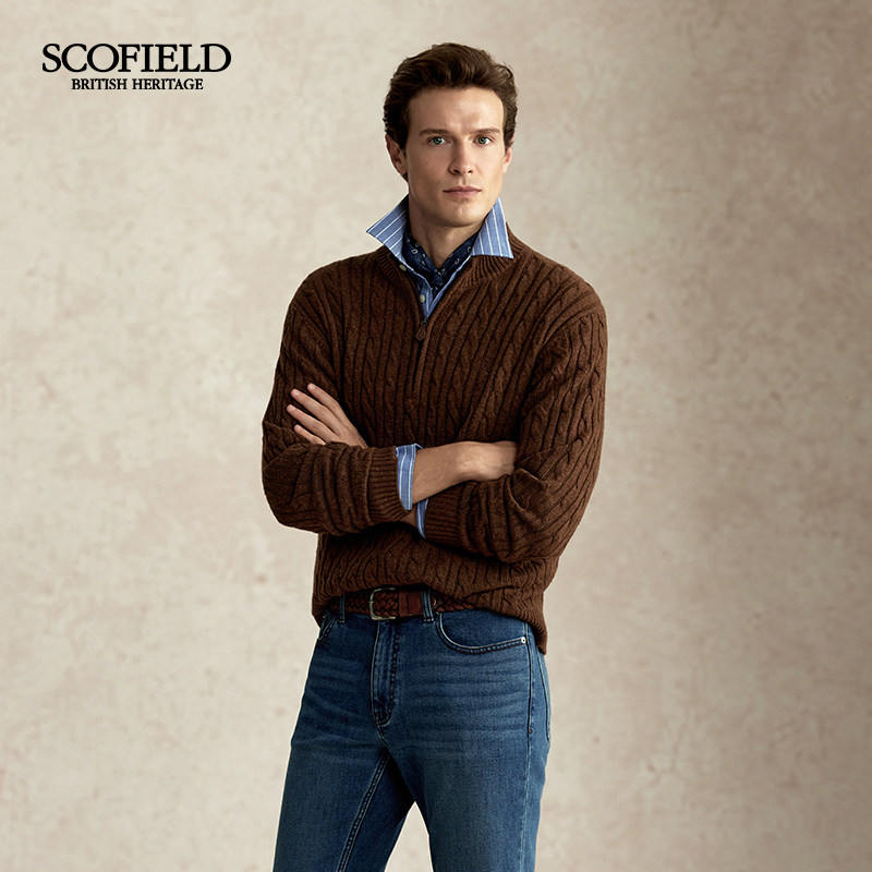 SCOFIELD男装2023秋冬新款山羊绒羊毛混纺毛衣,精选优质山羊绒与羊毛混纺面料,触感柔软细腻,保暖性出众,轻盈贴合身形。简约立领设计,线条利落,凸显男士儒雅气质,纯色基调百搭实穿,轻松驾驭商务休闲多种场合。立体剪裁工艺,穿着舒适不束缚,细节处彰显品质匠心。无论是搭配西裤还是休闲裤,皆能展现低调优雅的都市型格。这款针织衫集保暖、舒适与时尚于一体,是秋冬衣橱不可或缺的精品之选,诠释现代男性内敛而不失品味的着装态度。