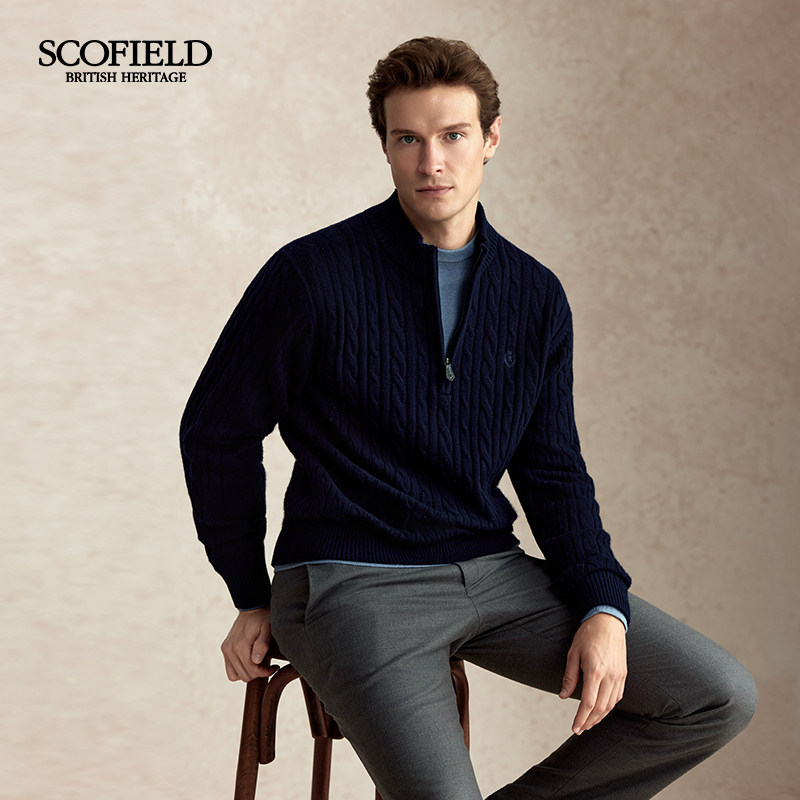 天猫【山羊绒】SCOFIELD男装秋冬新款羊毛混纺毛衣简约纯色立领针织衫