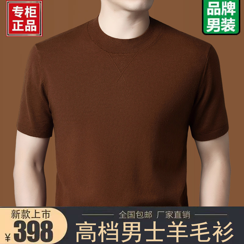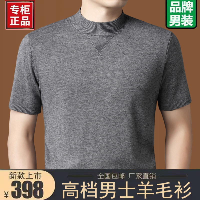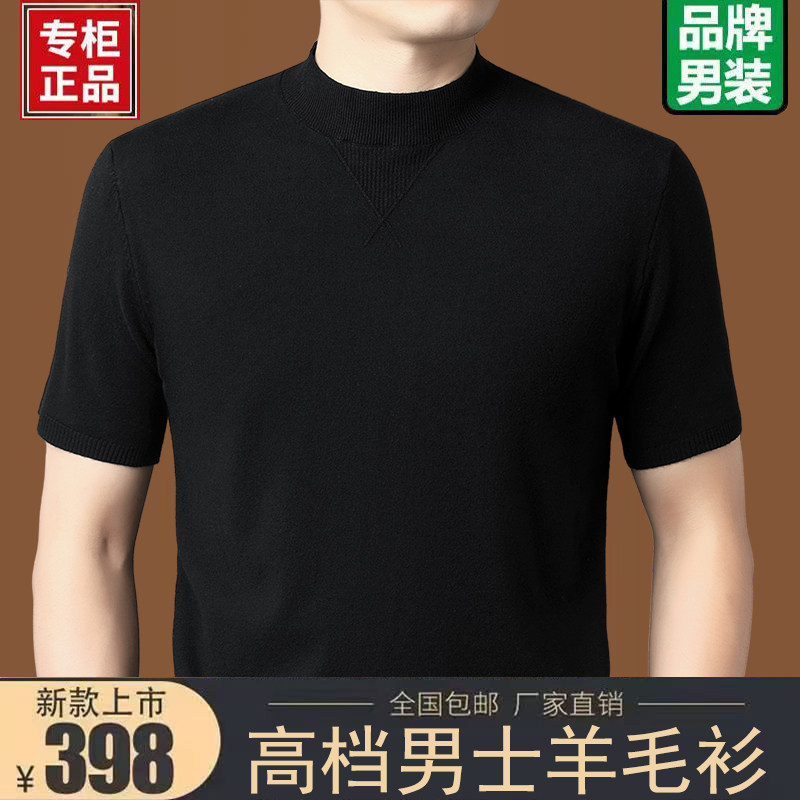 淘宝鄂尔多斯市产男士半高领短袖羊毛衫中老年半袖毛衣大码针织打底衫