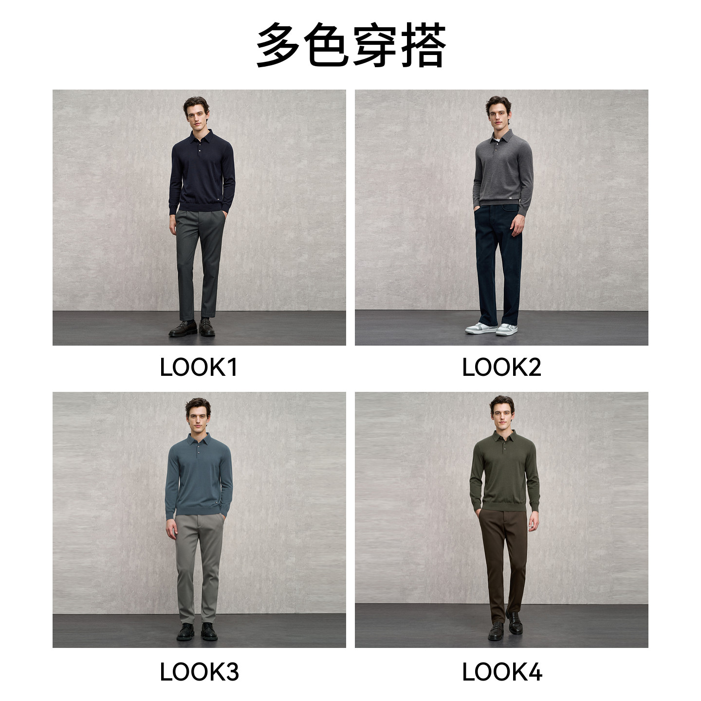 天猫EMZ鄂尔多斯【羊毛羊绒】秋冬新款抑菌商务休闲针织衫翻领毛衣男