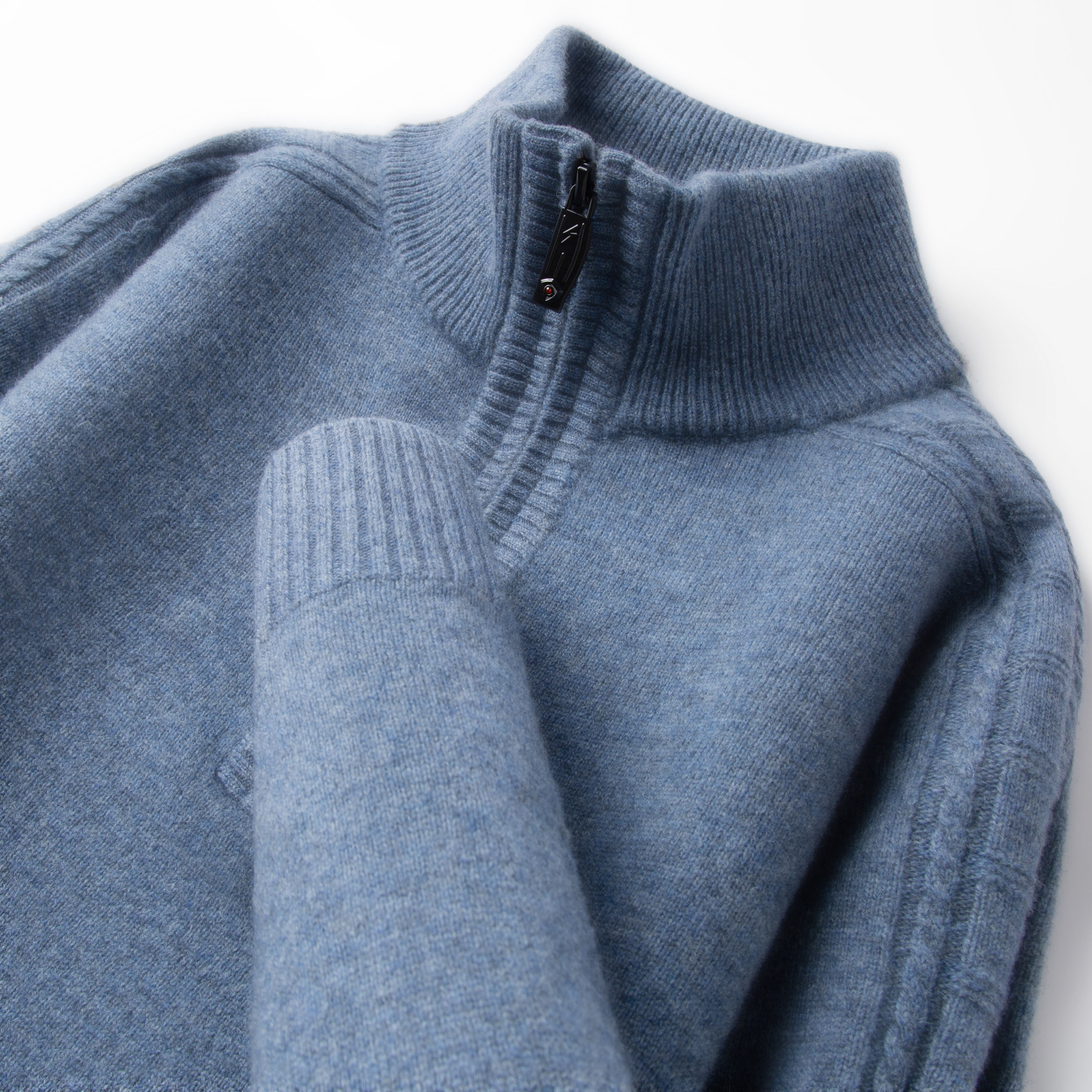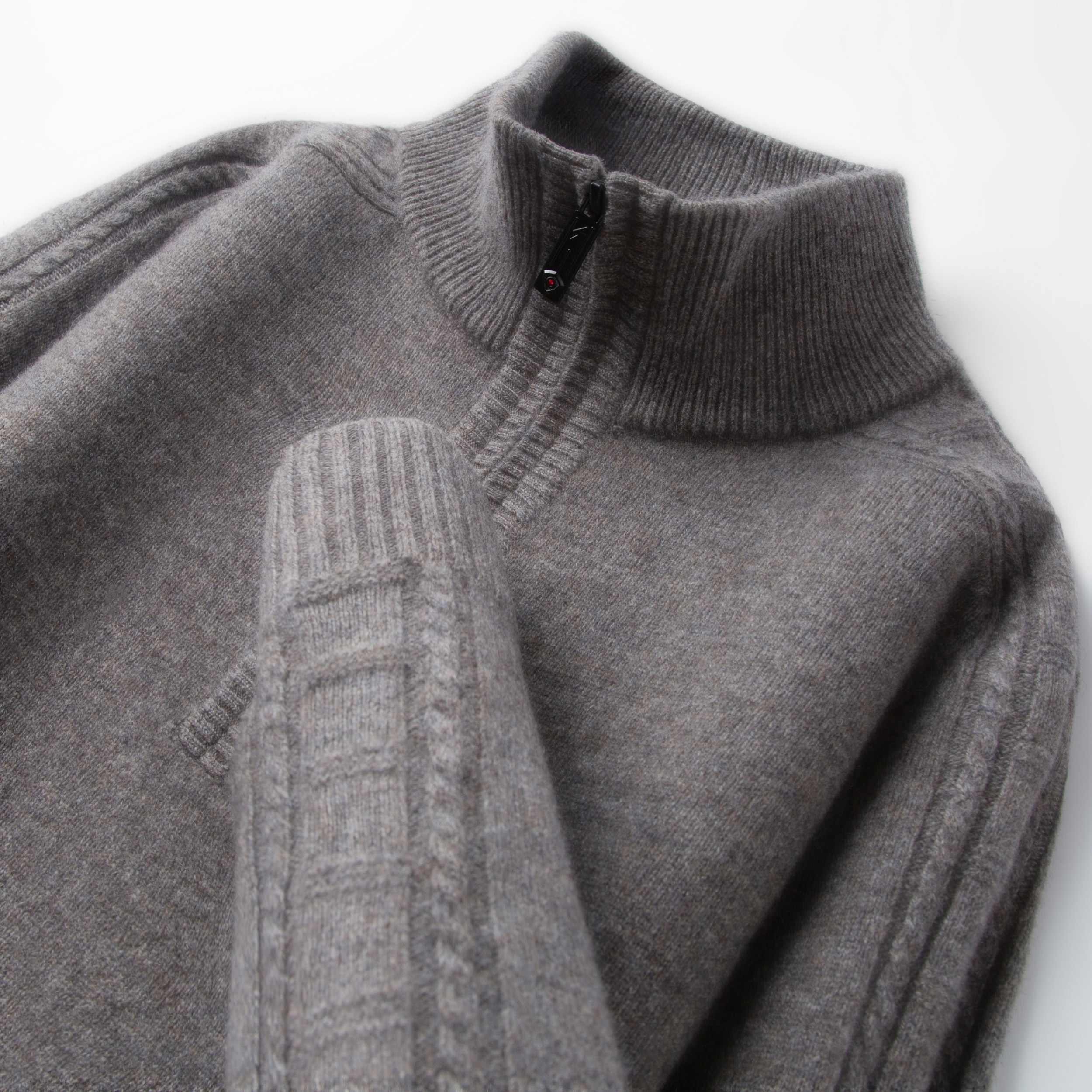 淘宝鄂尔多斯市100特级纯山羊绒男士半高拉链领毛衣加厚款冬季羊毛衫