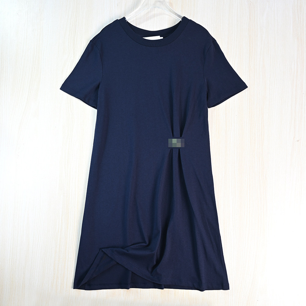 淘宝思琪女装261/29 法国单气质褶皱棉质圆领修身休闲短袖T恤连衣裙