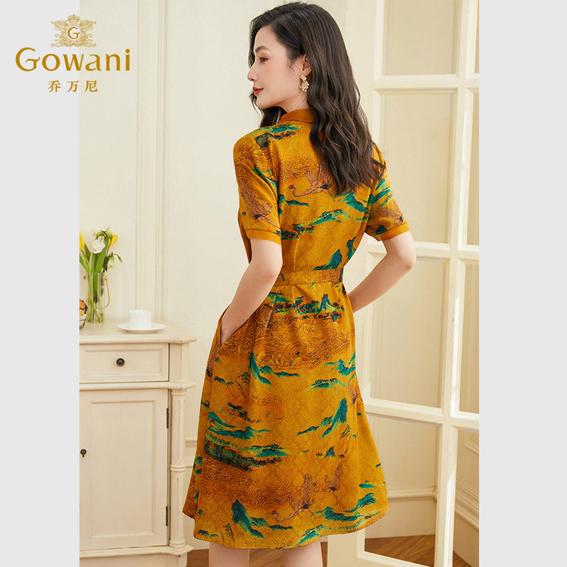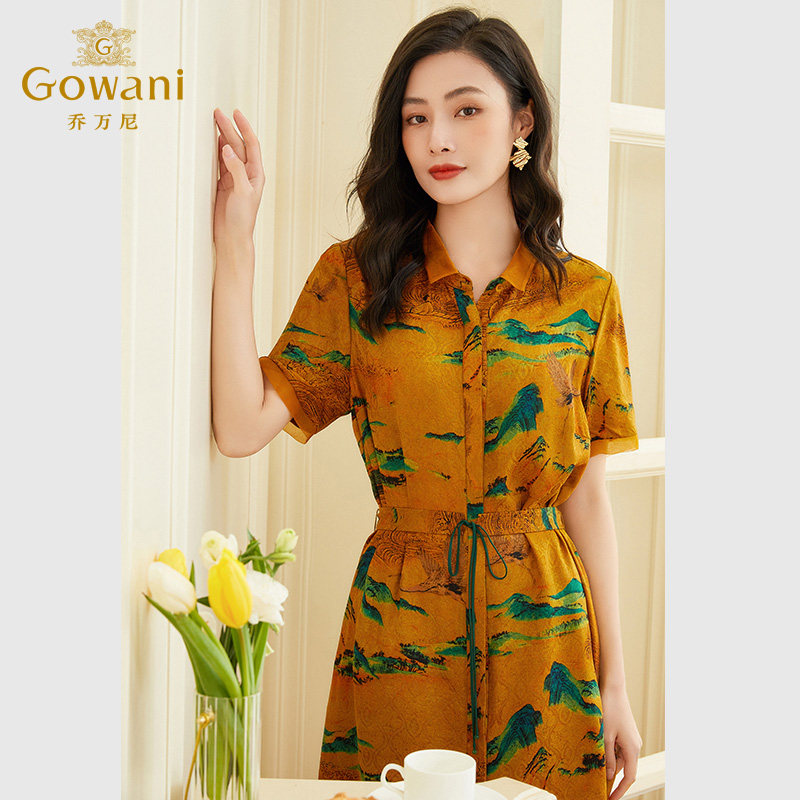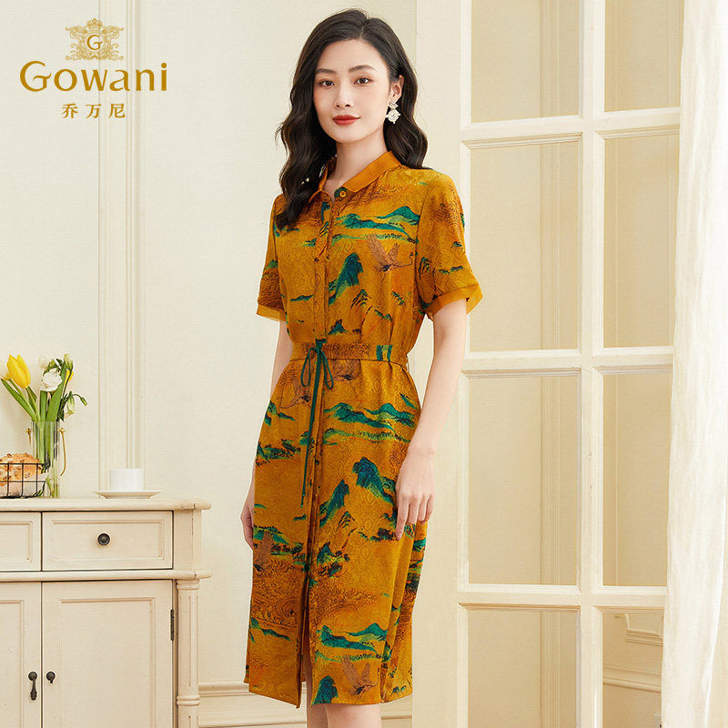 天猫乔万尼真丝连衣裙好看流行女年夏新款桑蚕丝商场同款短袖EF2E331