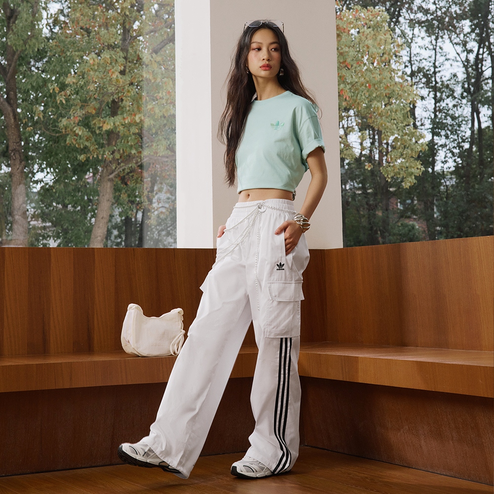 天猫轻机能风宽松多口袋工装阔腿运动裤女装adidas阿迪达斯三叶草