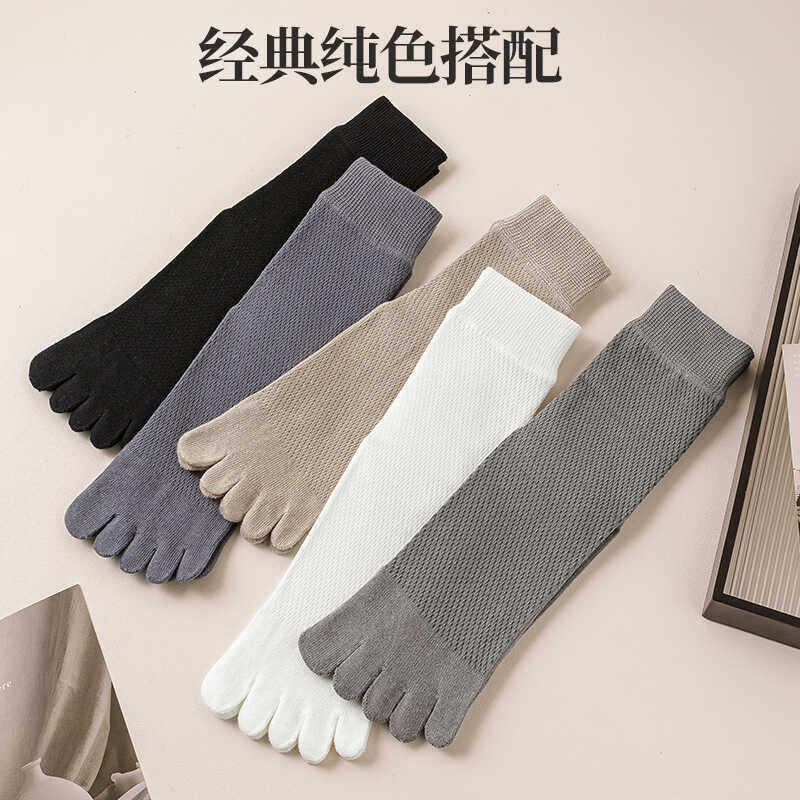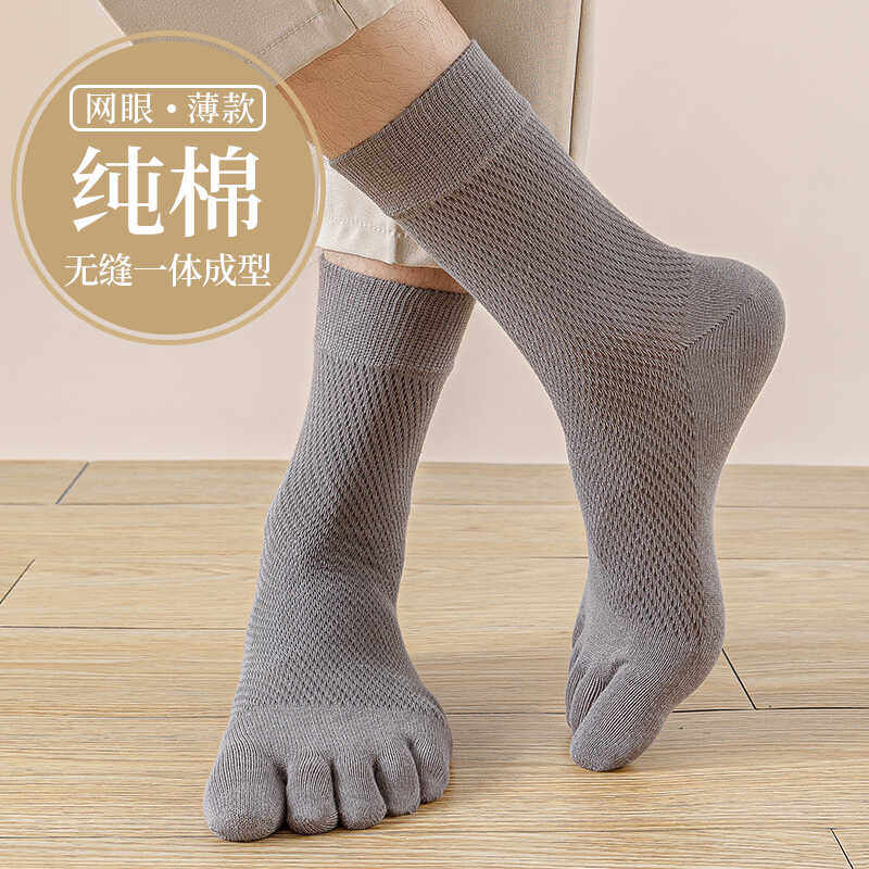 淘宝五指袜子男士纯棉防臭吸汗分趾脚趾网眼中筒夏季薄款透气商务男袜
