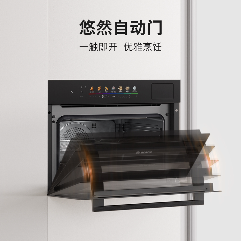 博世6系御器触启款蒸烤一体机D4W集蒸、烤、烘、发酵等多功能于一体,专为现代家庭厨房设计。采用简约嵌入式外观与触控操作面板,一键触启,操作直观便捷。48L大容量腔体,满足全家烹饪需求,搭配精准温控与多段烹饪程序,无论是鲜嫩蒸鱼还是酥脆烘焙,都能轻松掌控。特有蒸汽辅助清洁功能,有效分解油污,维护更省心。内置智能菜谱,支持自动烹饪,让美味无需复杂操作。D4W以德国精工品质,融合智能科技与人性化设计,为用户带来高效、健康、高品质的厨房体验,是提升生活品质的得力厨电之选。