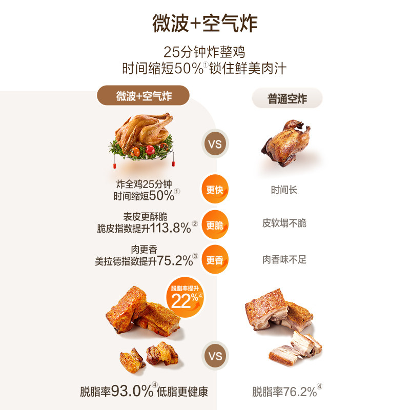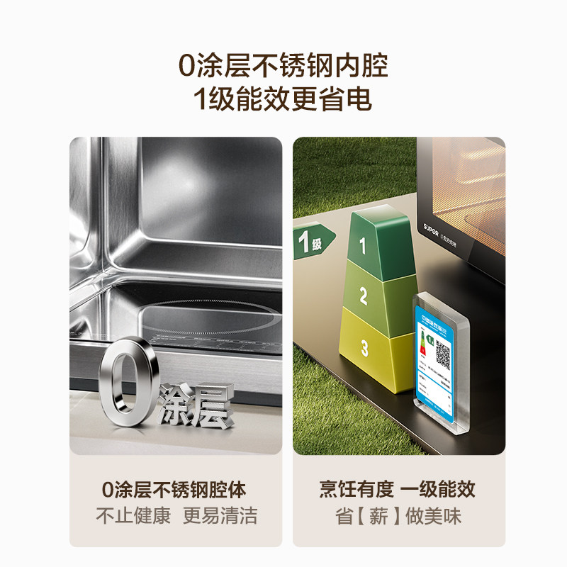 苏泊尔电烤箱微炸烤蒸一体家用变频大容量0涂层可视智能新微波炉,集微、炸、烤、蒸四大功能于一体,满足多样化烹饪需求。采用先进变频技术,精准控温,节能高效;大容量设计,轻松应对家庭聚餐。创新0涂层内胆,健康易清洁,告别化学涂层脱落隐患。配备高清可视窗,实时监控食物状态,避免过度烹饪。智能菜单一键操作,新手也能轻松上手。结合微波快速加热与烘烤酥脆口感,实现外酥里嫩的完美效果。无论是蒸鱼、烤鸡、空气炸薯条,还是快速复热,一机搞定。苏泊尔以科技赋能厨房,打造健康、便捷、智能的现代烹饪体验,是家庭厨房的理想之选。