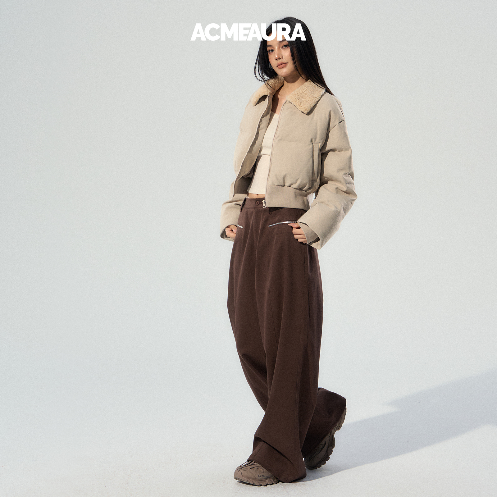 绫致ONLY2025秋冬新款宽松工装裤松紧腰头阔腿裤牛仔裤女