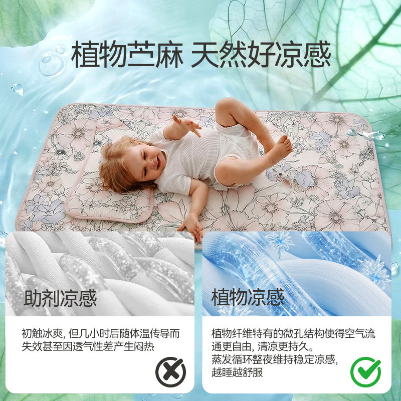 天猫英氏婴儿凉席子苎麻冰丝儿童a类母婴级宝宝幼儿园凉垫夏季午睡席