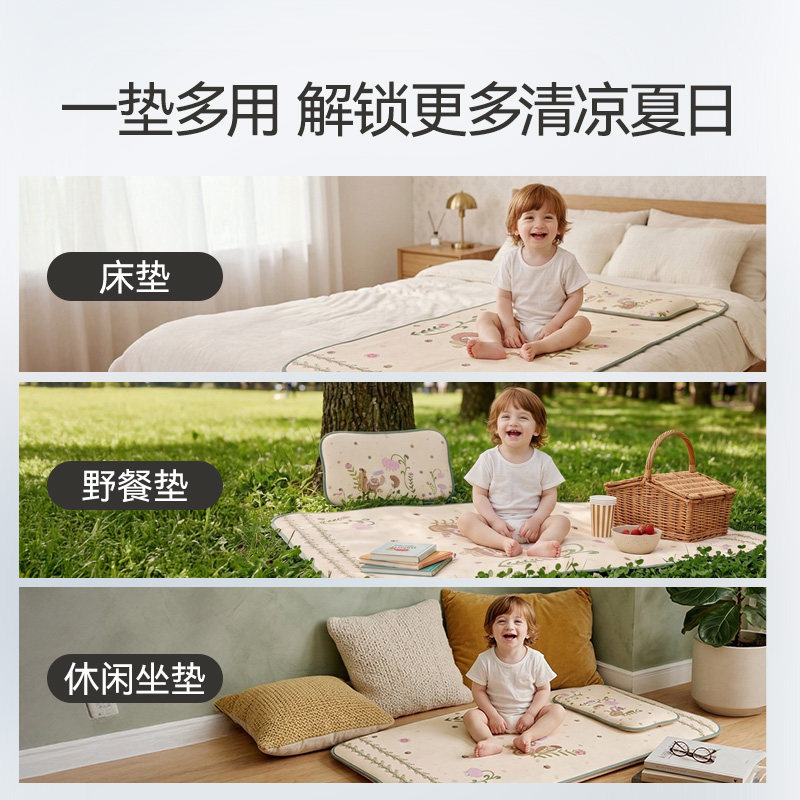 天猫英氏凉席婴儿可用夏季冰丝婴儿床坐垫2026年儿童凉席地垫枕头套组