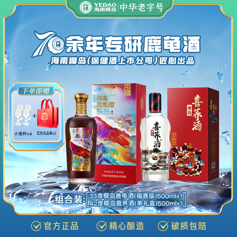 天猫【节日礼盒】33度椰岛鹿龟酒正宗保健养生酒送父母海南高端新品
