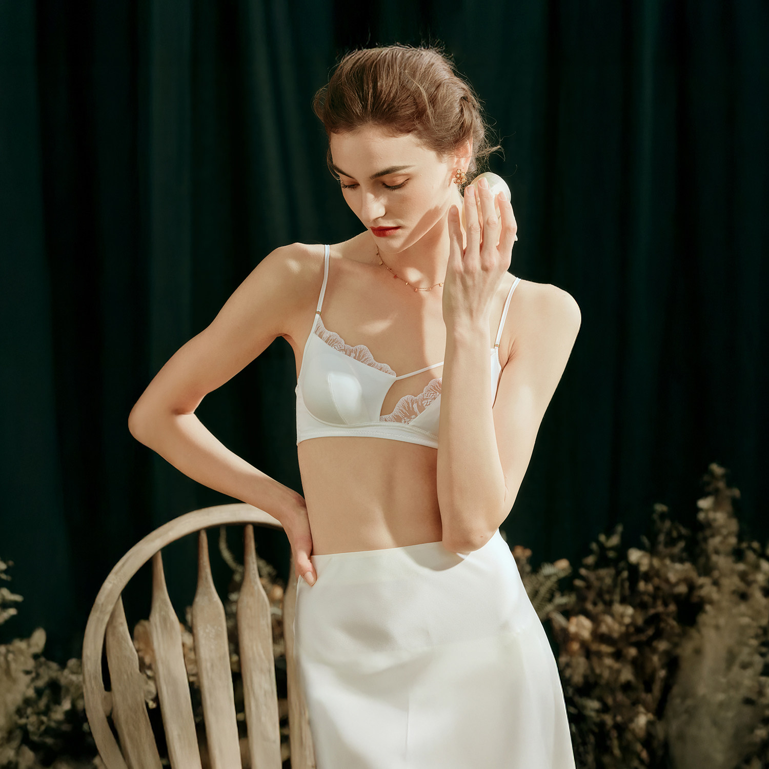ubras轻奢系列珍珠缎桑蚕丝内衣女小胸聚拢性感真丝文胸罩套装