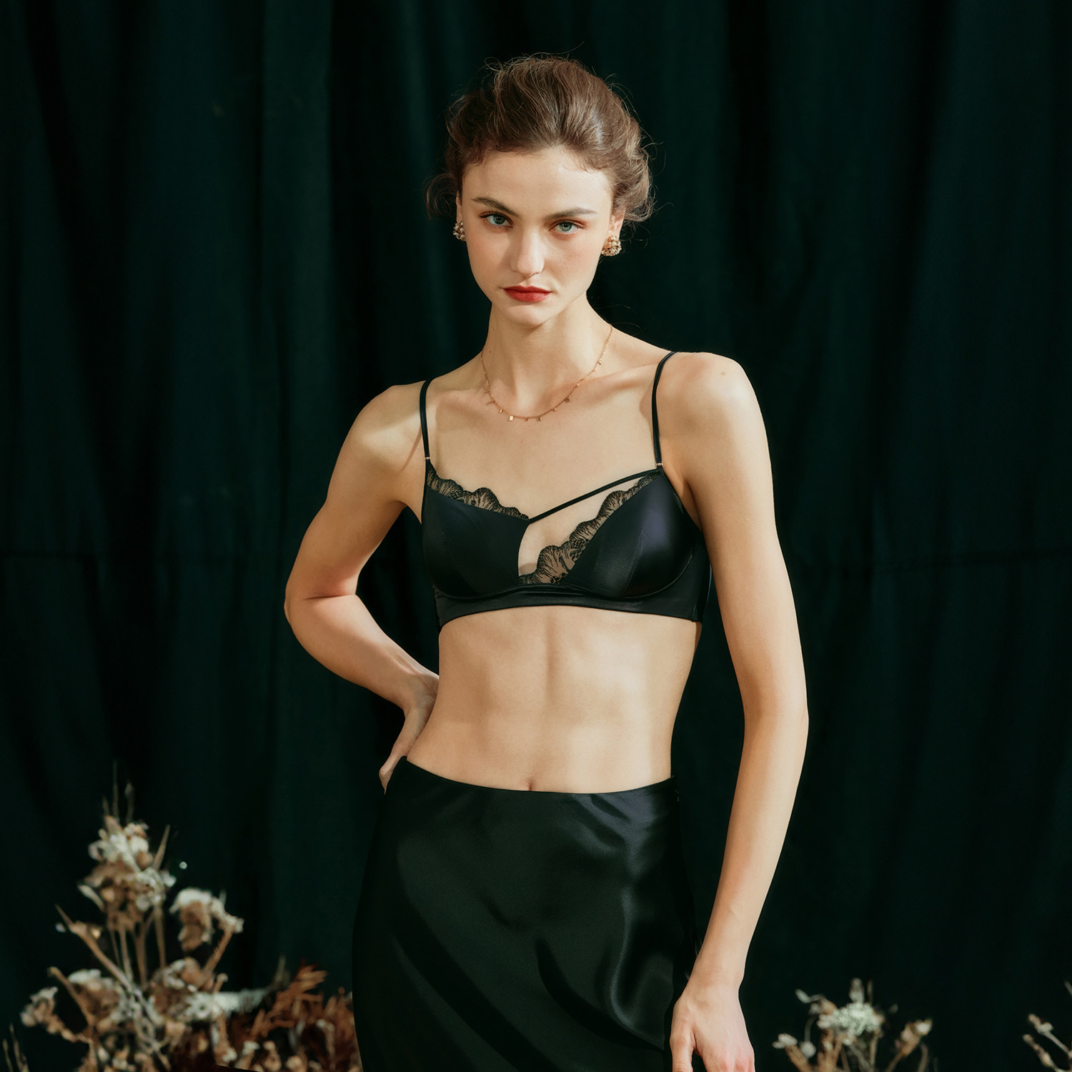 DPLAYSWEET桑蚕丝法式蕾丝无钢圈文胸套装性感真丝内衣女士新款