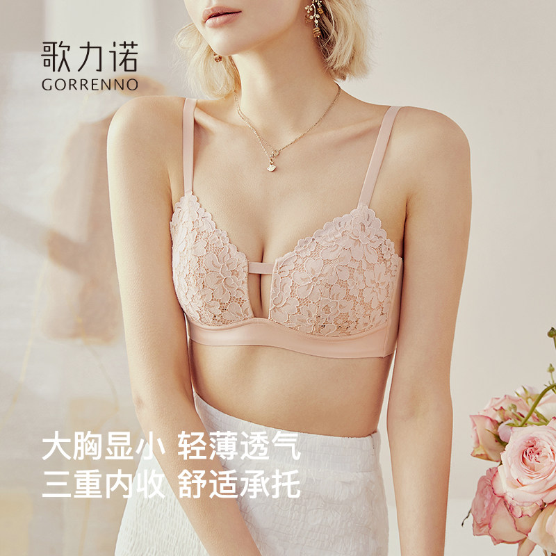 天猫歌力诺大胸显小内衣女薄款无钢圈聚拢纯欲收副乳防下垂文胸罩套装